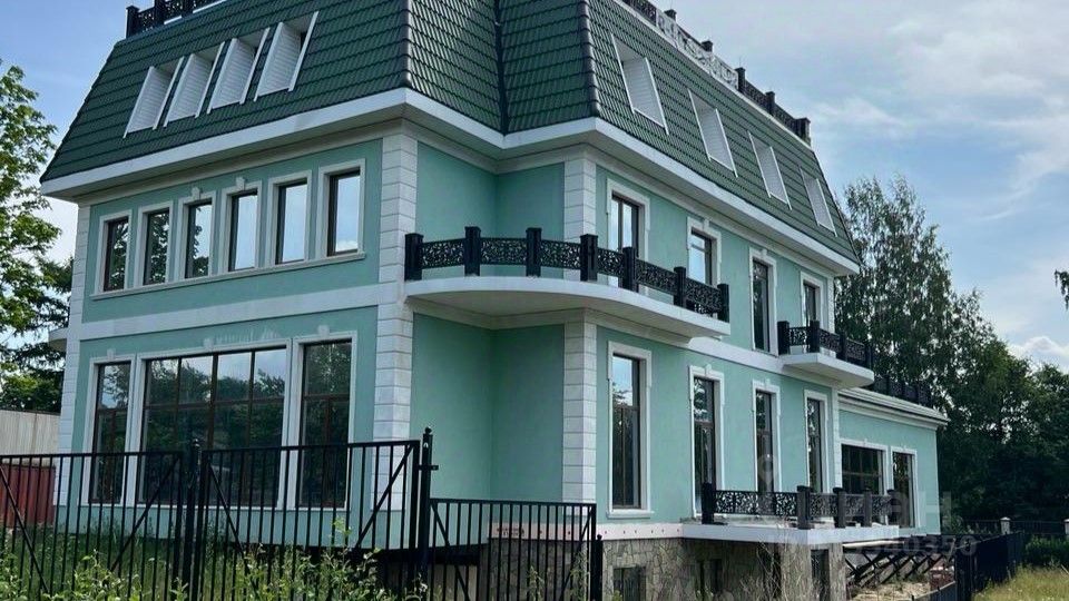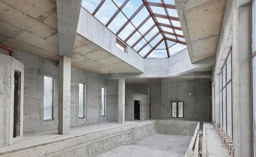 Площадь участка: 15.5 сот. Категория земель: индивидуальное жилищное строительство (ИЖС). Расстояние от КАД: 9 км. Материал стен: кирпич. В доме цокольный этаж с паркингом, просторная гостиная, винтовая лестница на второй этаж с 7 спальнями. Планируется бассейн 25 м, спа-комплекс и терраса для релаксации. Дом без отделки, что позволяет реализовать дизайнерские идеи. На крыше - зона отдыха с остекленной беседкой и скульптурами. Также есть гостевой домик в том же стиле.