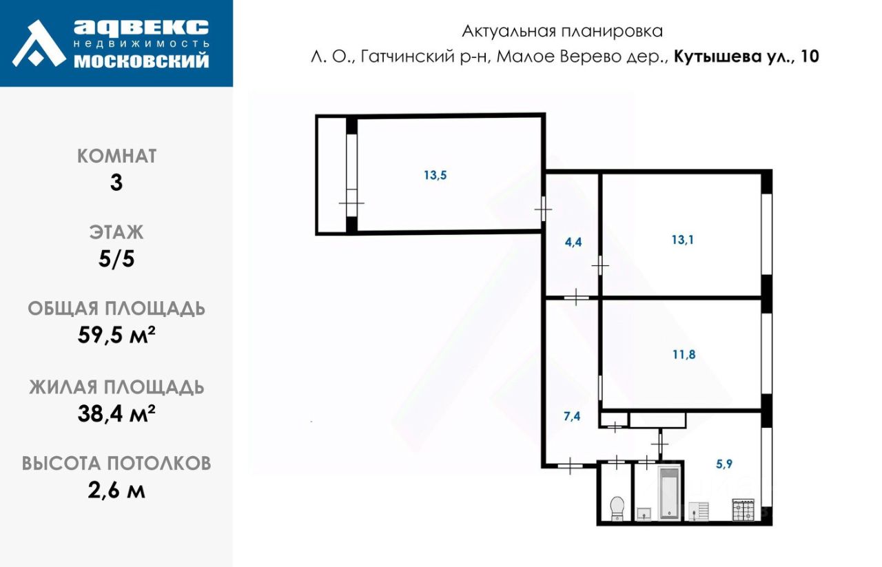 Продажа 3 комнатной квартиры в центре развитого населённого поселения.