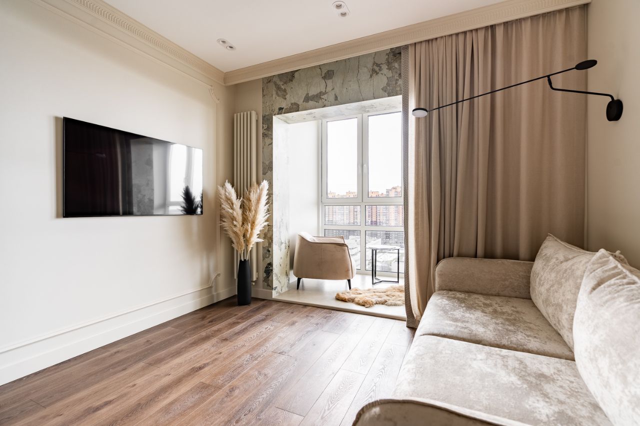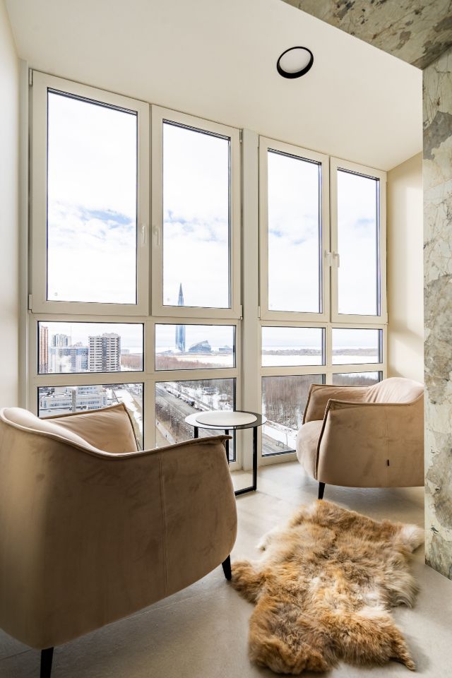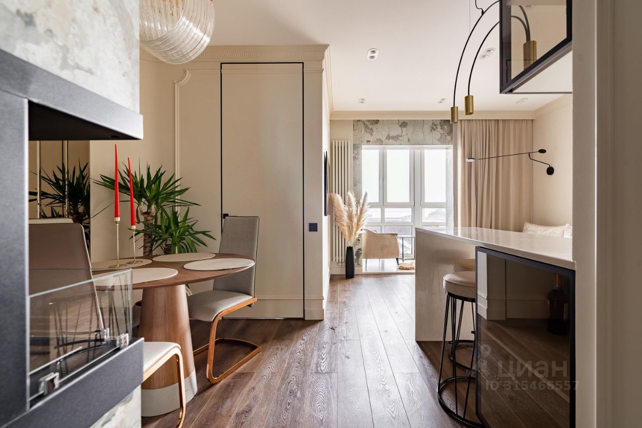 - Кухня-гостиная: 20 м², где можно проводить вечера с близкими или устраивать ужины с друзьями. Встроенная техника и уютный био-камин добавят тепла в любой вечер. А утепленная лоджия с панорамным остеклением подарит вам особое место для отдыха, наслаждайтесь видом на город