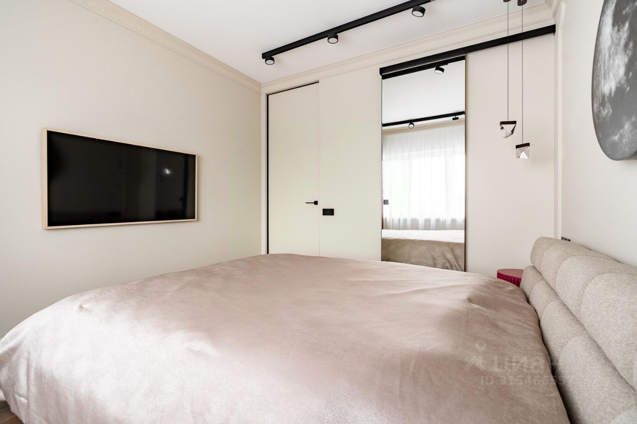 - Спальня: 20 м² - достаточно места для большой кровати, а скрытая гардеробная с оборудованной системой хранения избавит от визуального шума и позволит поддерживать порядок.
