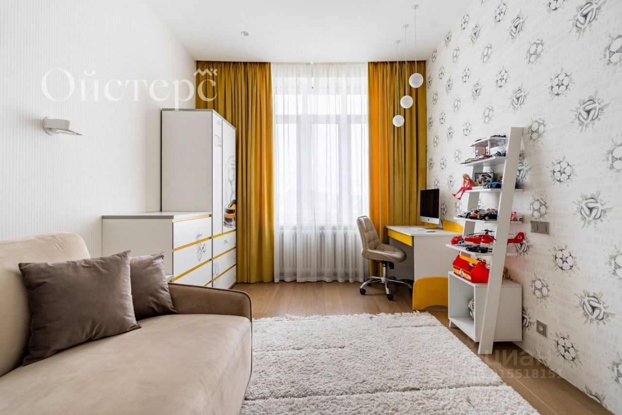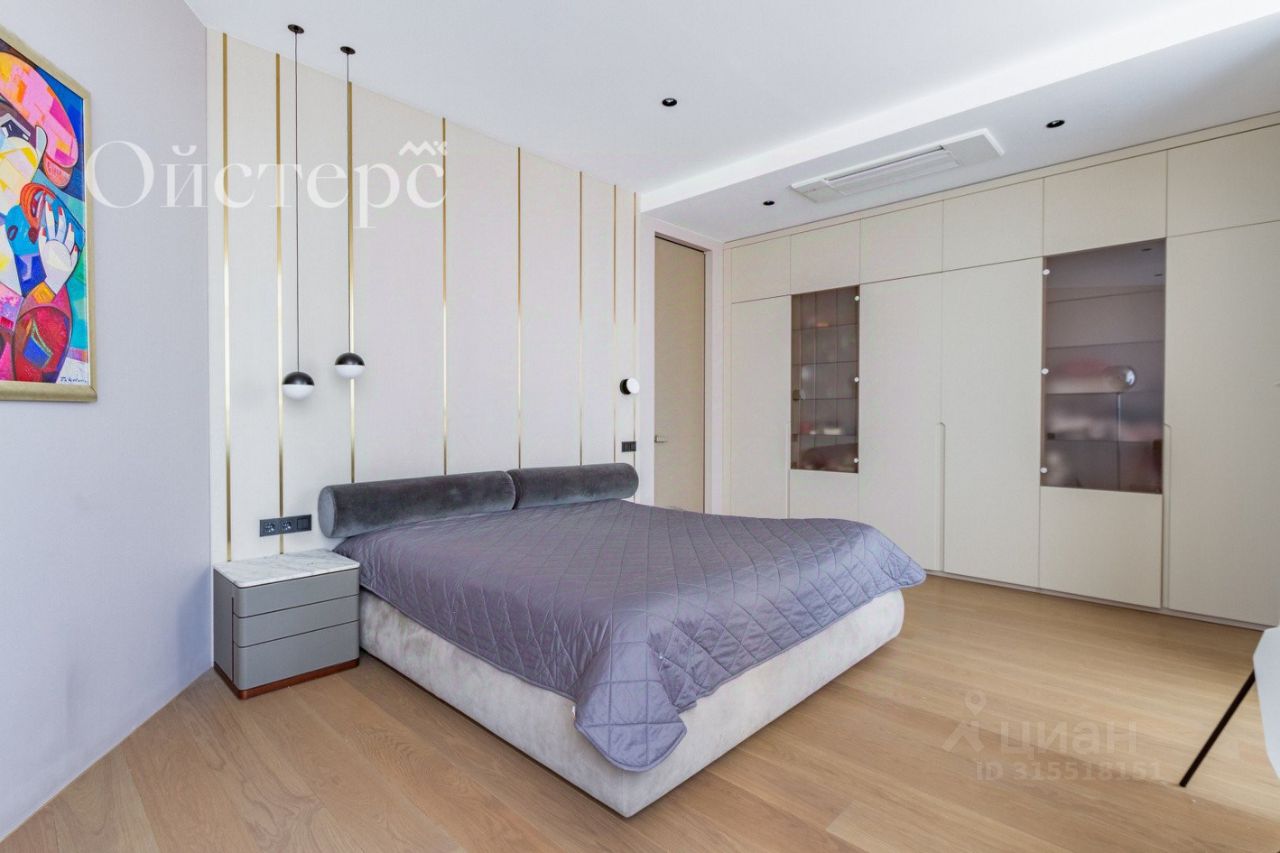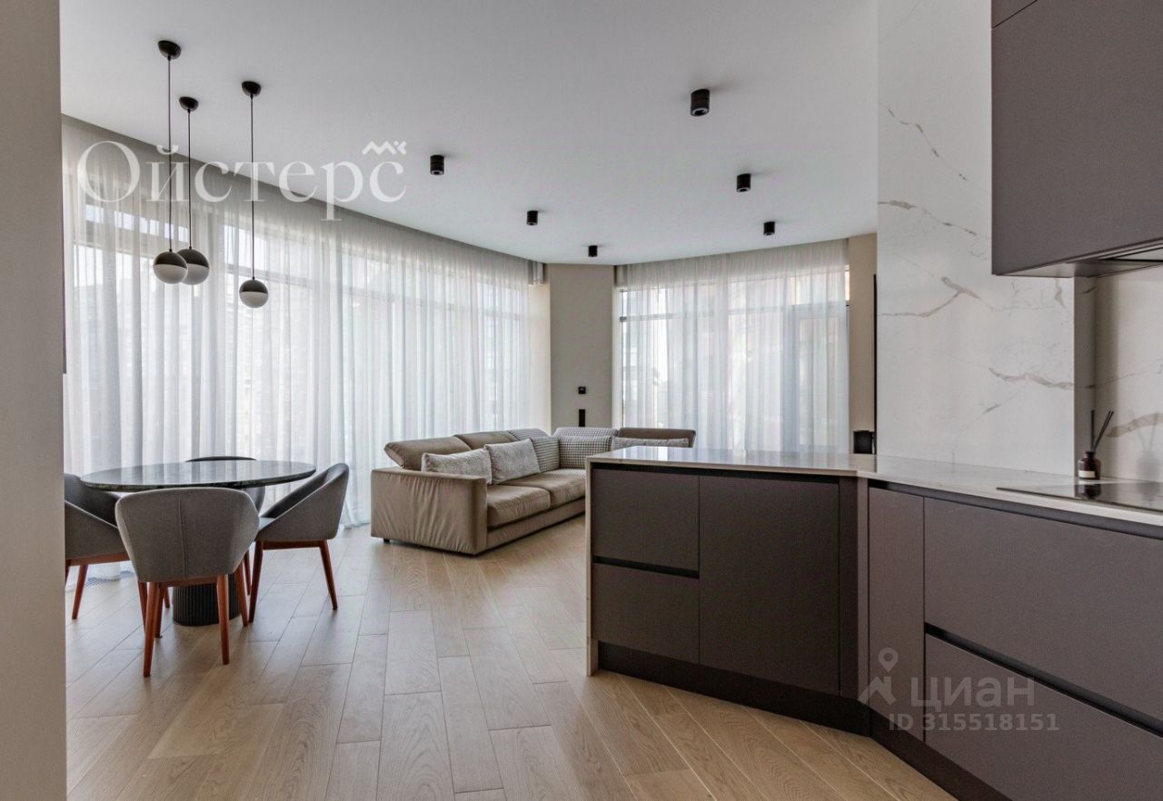 Квартира находится на 7 этаже. Площадь 120 м². Высота потолков 3 метра. Просторная планировка включает три спальни, кухню-гостиную, гардеробную и постирочную. Дизайн выполнен по авторскому проекту. Квартира полностью готова к жизни, всё остаётся на своих местах.