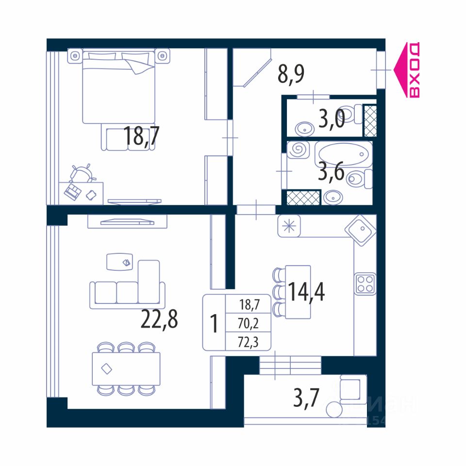 Продается просторная однокомнатная квартира в новом доме в ЖК'' Аист'' в развивающем Красносельском районе г. Санкт-Петербурга. Квартира светлая, с функциональной планировкой с просторной кухней- гостиной 14,4+22,8 кв.м. и спальней 18,7 кв.м. Квартира расположена на комфортном 3 этаже 22-этажного монолитно-кирпичного дома. В доме есть как пассажирский, так и грузовой лифты, что делает его удобным для жильцов с разными потребностями. Подземный паркинг.