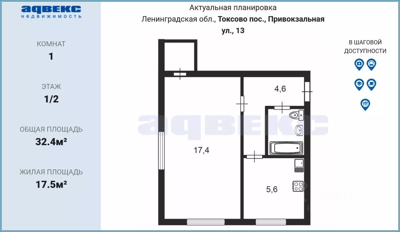Предлагаем приобрести 1 комнатную квартиру , расположенную на 1 этаже уютного, малоквартирного дома в самом центре поселка Токсово.