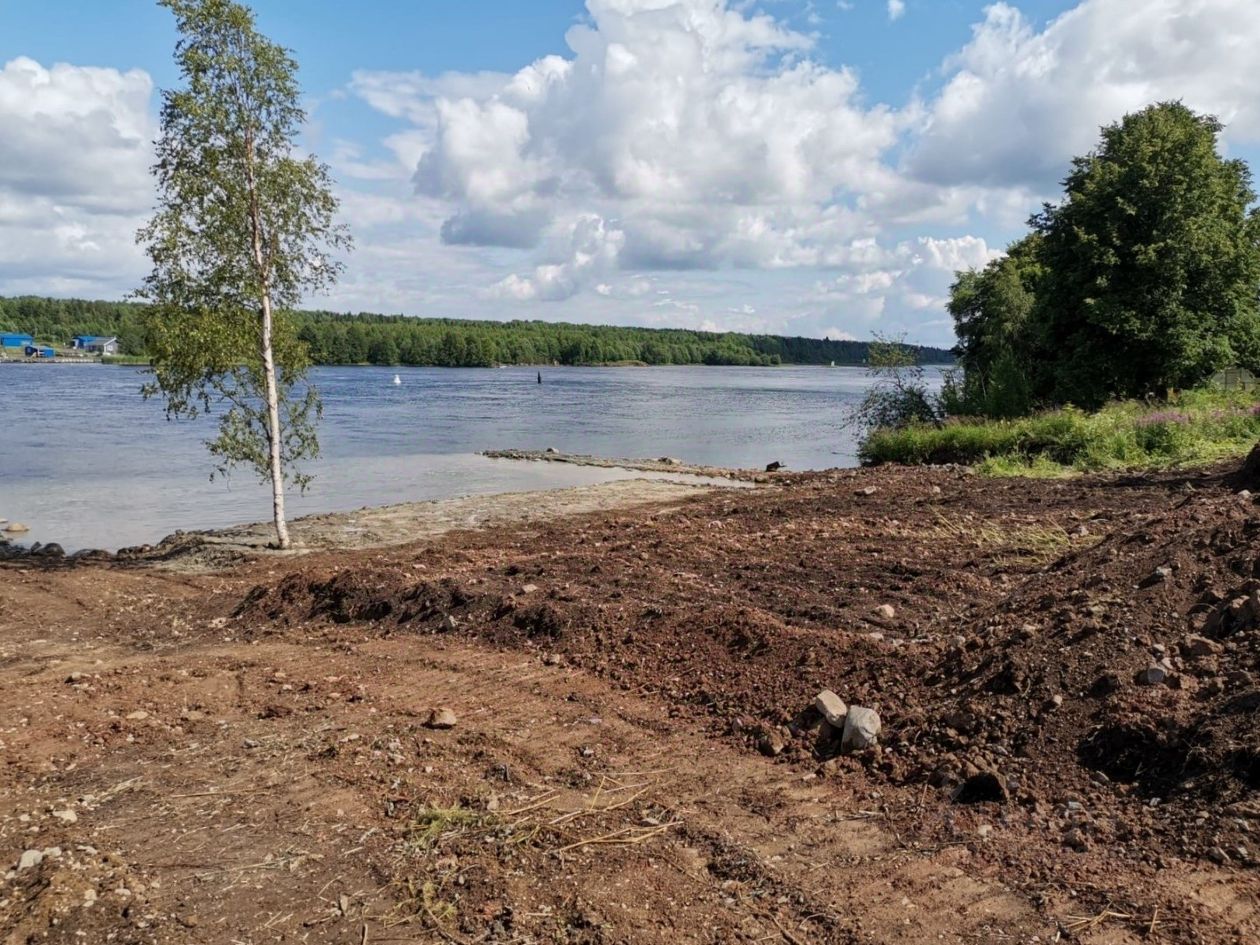 Готовность к строительству: участок отсыпан, выровнен, прибрежная зона углублена, сделана каменная насыпь (подготовка для устройства причала или пристани).