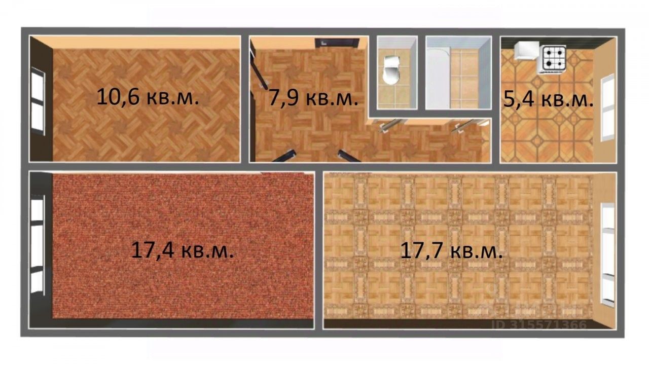 Квартира имеет три изолированные комнаты и кухню 5,4 кв.м, выходят на разные стороны (Запад и Восток). Раздельный санузел.
