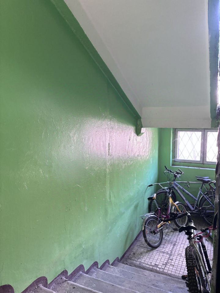 Дом расположен в тихом, зеленом районе с развитой инфраструктурой (продуктовые магазины, детский сад, поликлиника, школа). В подъезде очень чисто, на первом этаже можно оставить коляски и велосипеды.