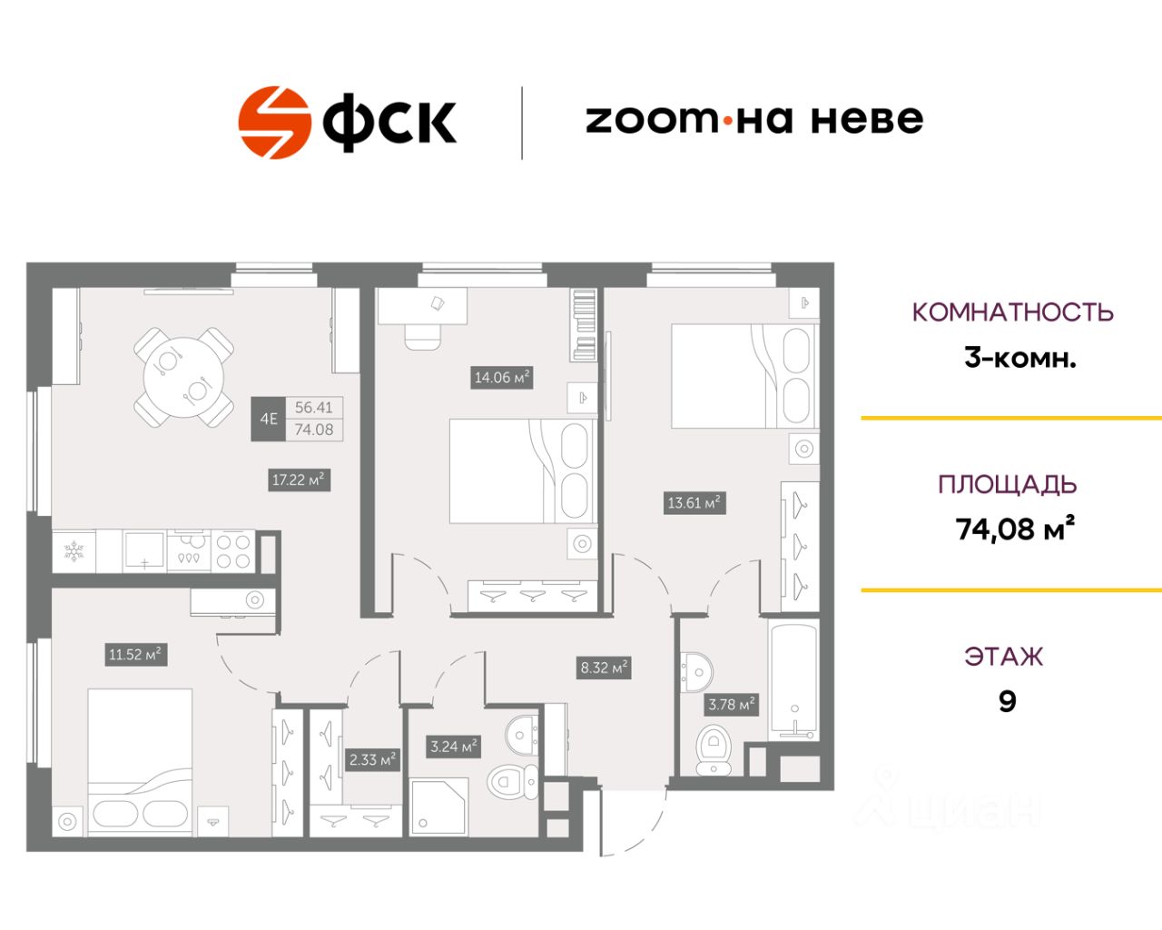 Цена со скидкой до 30% в прямой продаже от застройщика — только в этом месяце. При покупке апартаментов - паркинг за полцены. На все апартаменты действует беспроцентная рассрочка. Купите на распродаже! Покупка недвижимости в Zoom на Неве сейчас со скидкой до 30% позволит через 2 года получить доход до 6 300 000 руб. Роскошные виды на Неву. 3-к апартамент в комплексе класса бизнес-лайт Zoom на Неве на 9-м этаже. Общая площадь 74,4. Без отделки.