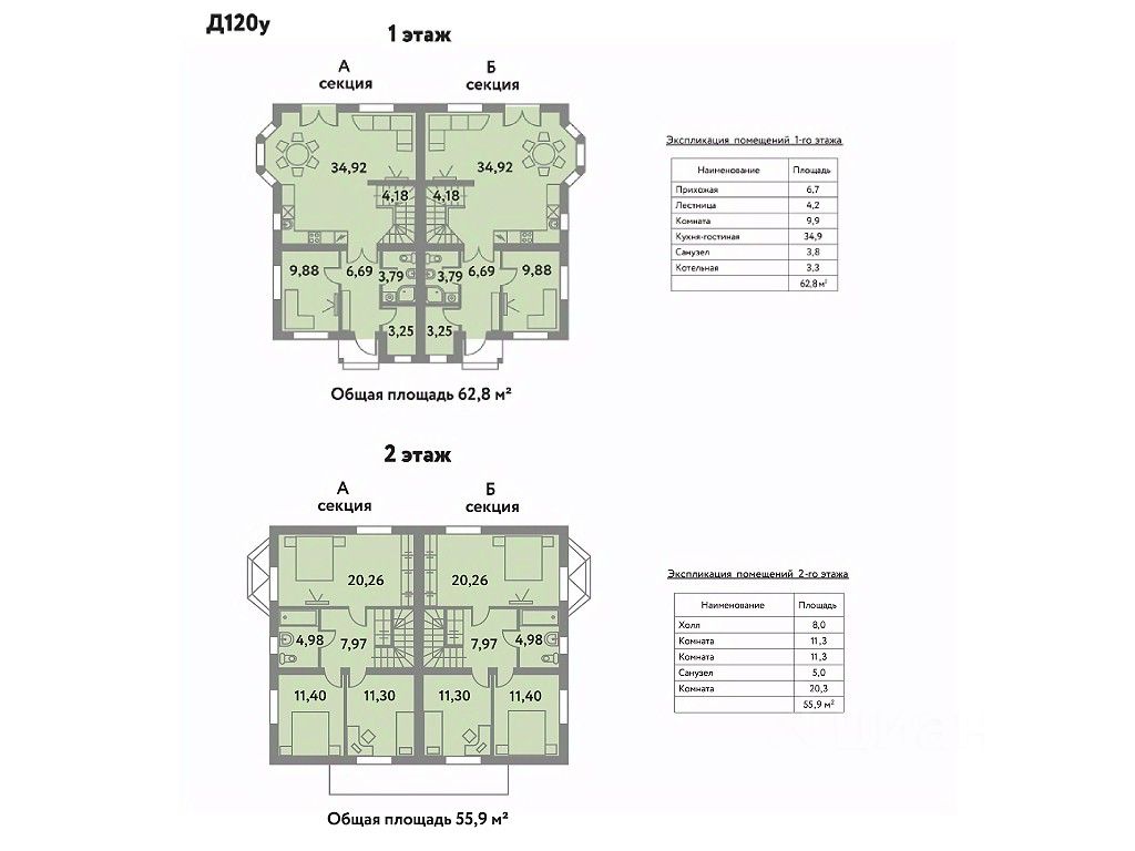 • Дом, Таунхаус, Танхаус, Дача, Коттедж, Дуплекс 120 м² на участке 3 сотки, секция Б • Материал стен: газобетон и термопанели по технологии ''теплый дом'' • Фундамент: заливная плита • Без отделки. • Крыша: металлочерепица • 4 изолированные комнаты, большая кухня-гостиная, гардеробная, 3 санузла.