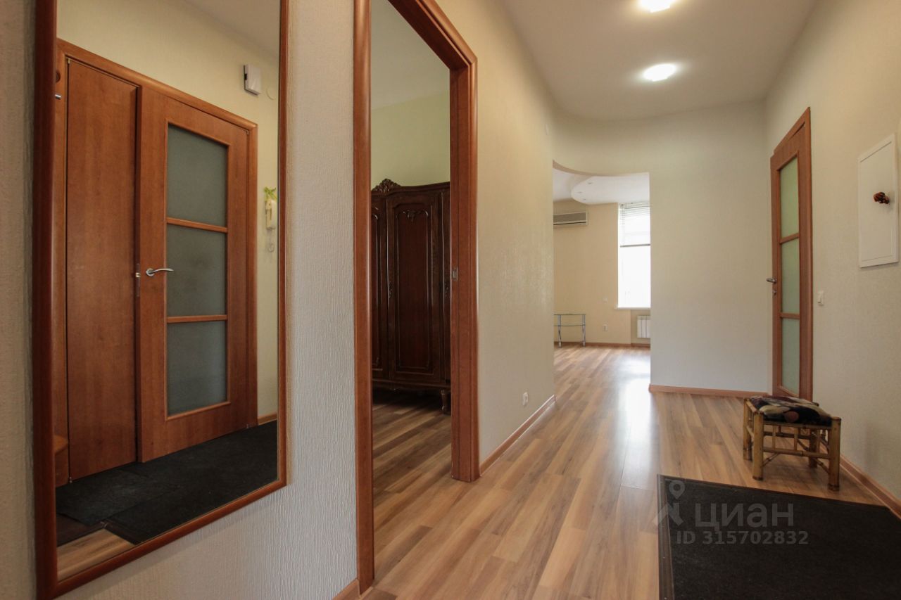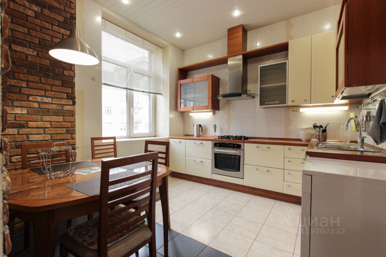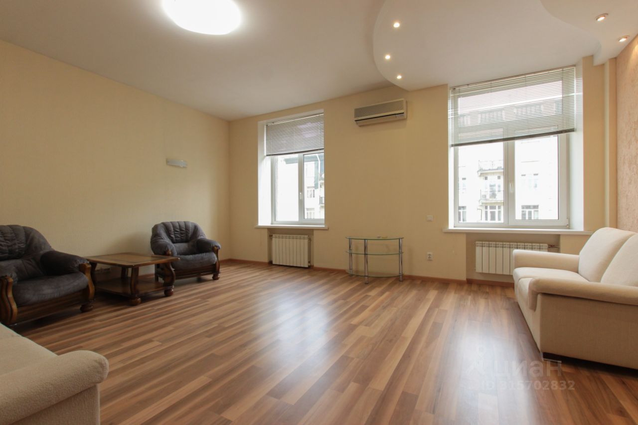 В квартире только что произведен качественный косметический ремонт, вся мебель из натурального дерева. На кухне установлена итальянская встроенная кухня, вся встроенная бытовая техника также из Италии. Также в каждом помещении установлены кондиционеры. В квартире две изолированные спальные комнаты, большая гостиная с двумя окнами. Вид из окон на три стороны. Квартира находится на 5 этаже хорошего сталинского дома, в котором имеется лифт. Ухоженная парадная, на каждом этаже видеонаблюдение.