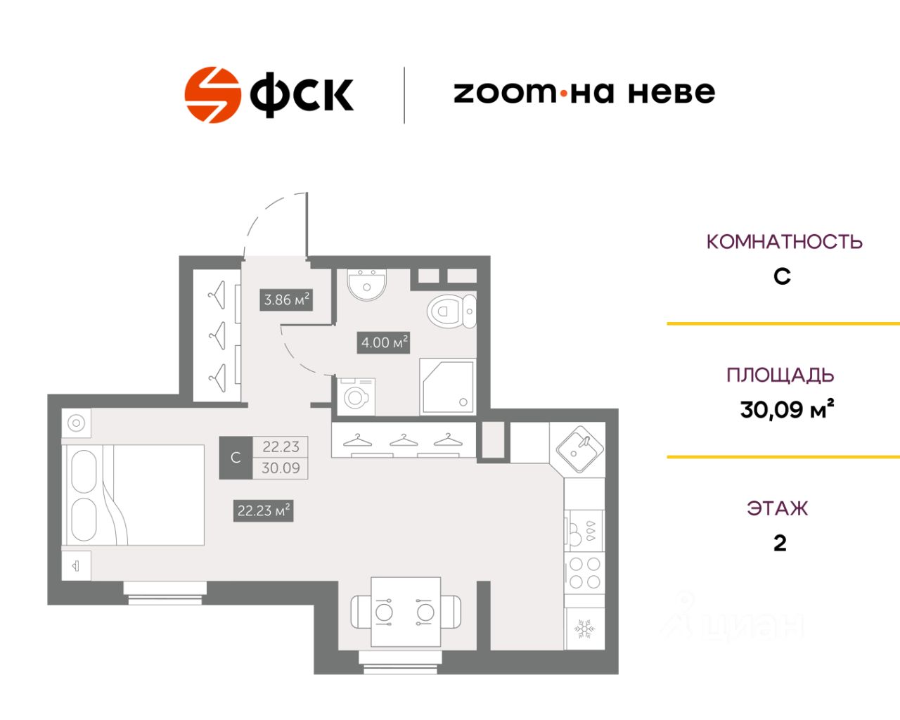 Цена со скидкой до 30% в прямой продаже от застройщика — только в этом месяце. При покупке апартаментов - паркинг за полцены. На все апартаменты действует беспроцентная рассрочка. Купите на распродаже! Покупка недвижимости в Zoom на Неве сейчас со скидкой до 30% позволит через 2 года получить доход до 6 300 000 руб. Роскошные виды на Неву. Апартамент-студия в комплексе класса бизнес-лайт Zoom на Неве на 2-м этаже. Общая площадь 30,09. Предчистовая отделка.