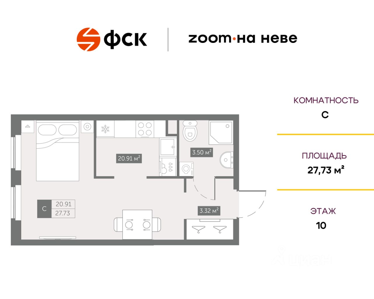 Цена со скидкой до 30% в прямой продаже от застройщика — только в этом месяце. При покупке апартаментов - паркинг за полцены. На все апартаменты действует беспроцентная рассрочка. Купите на распродаже! Покупка недвижимости в Zoom на Неве сейчас со скидкой до 30% позволит через 2 года получить доход до 6 300 000 руб. Роскошные виды на Неву. Апартамент-студия в комплексе класса бизнес-лайт Zoom на Неве на 10-м этаже. Общая площадь 27,73. Без отделки.