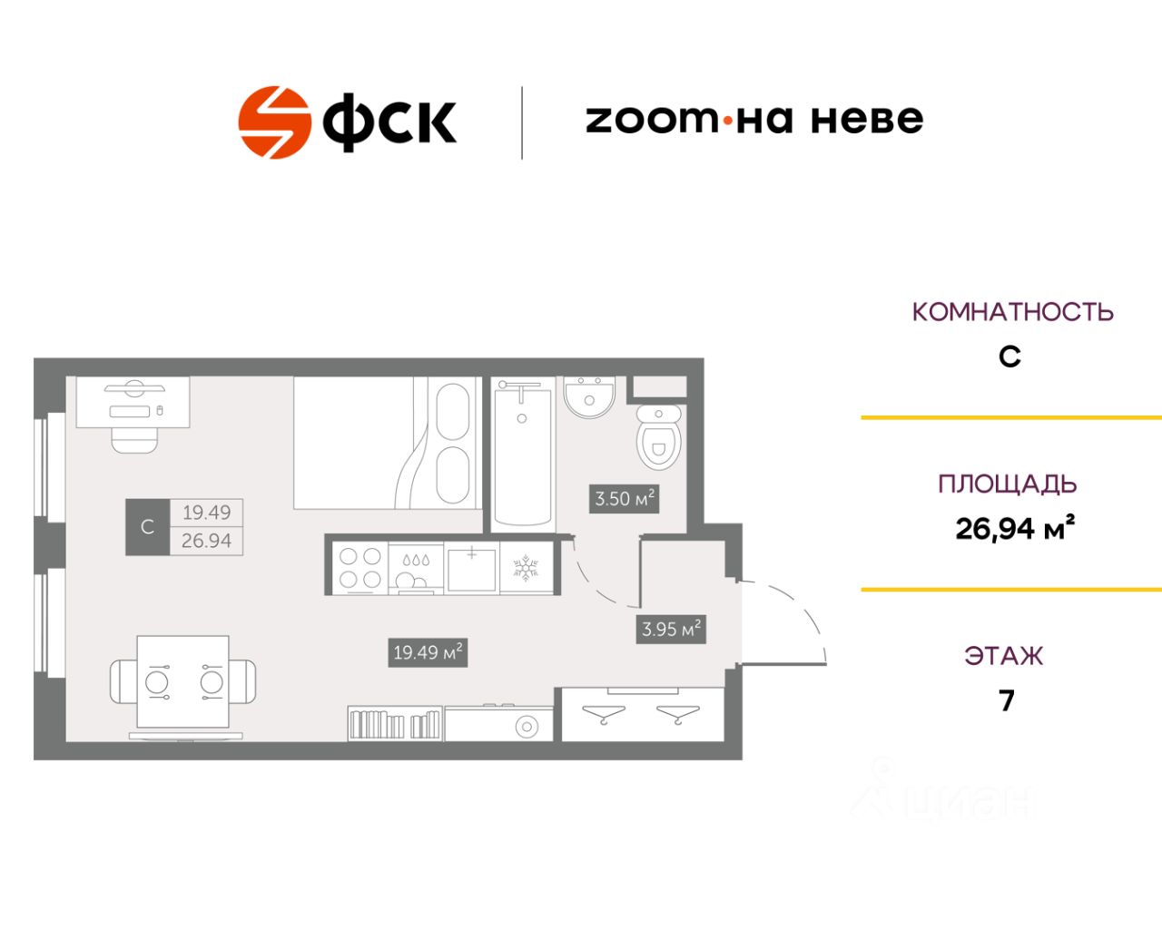 Цена со скидкой до 30% в прямой продаже от застройщика — только в этом месяце. При покупке апартаментов - паркинг за полцены. На все апартаменты действует беспроцентная рассрочка. Купите на распродаже! Покупка недвижимости в Zoom на Неве сейчас со скидкой до 30% позволит через 2 года получить доход до 6 300 000 руб. Роскошные виды на Неву. Апартамент-студия в комплексе класса бизнес-лайт Zoom на Неве на 7-м этаже. Общая площадь 26,94. Предчистовая отделка.