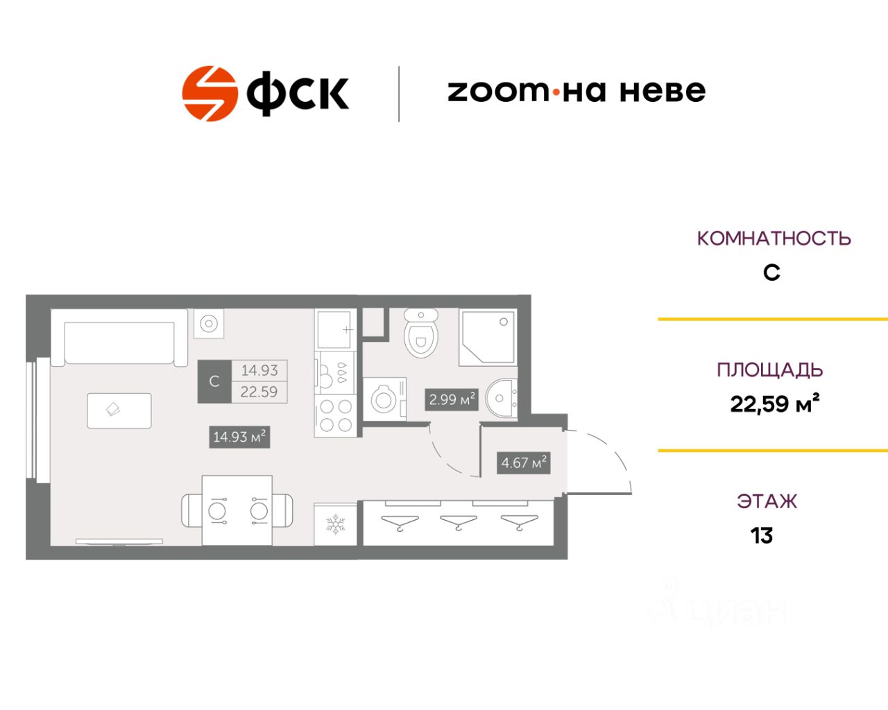 Цена со скидкой до 30% в прямой продаже от застройщика — только в этом месяце. При покупке апартаментов - паркинг за полцены. На все апартаменты действует беспроцентная рассрочка. Купите на распродаже! Покупка недвижимости в Zoom на Неве сейчас со скидкой до 30% позволит через 2 года получить доход до 6 300 000 руб. Роскошные виды на Неву. Апартамент-студия в комплексе класса бизнес-лайт Zoom на Неве на 13-м этаже. Общая площадь 22,59. Предчистовая отделка.
