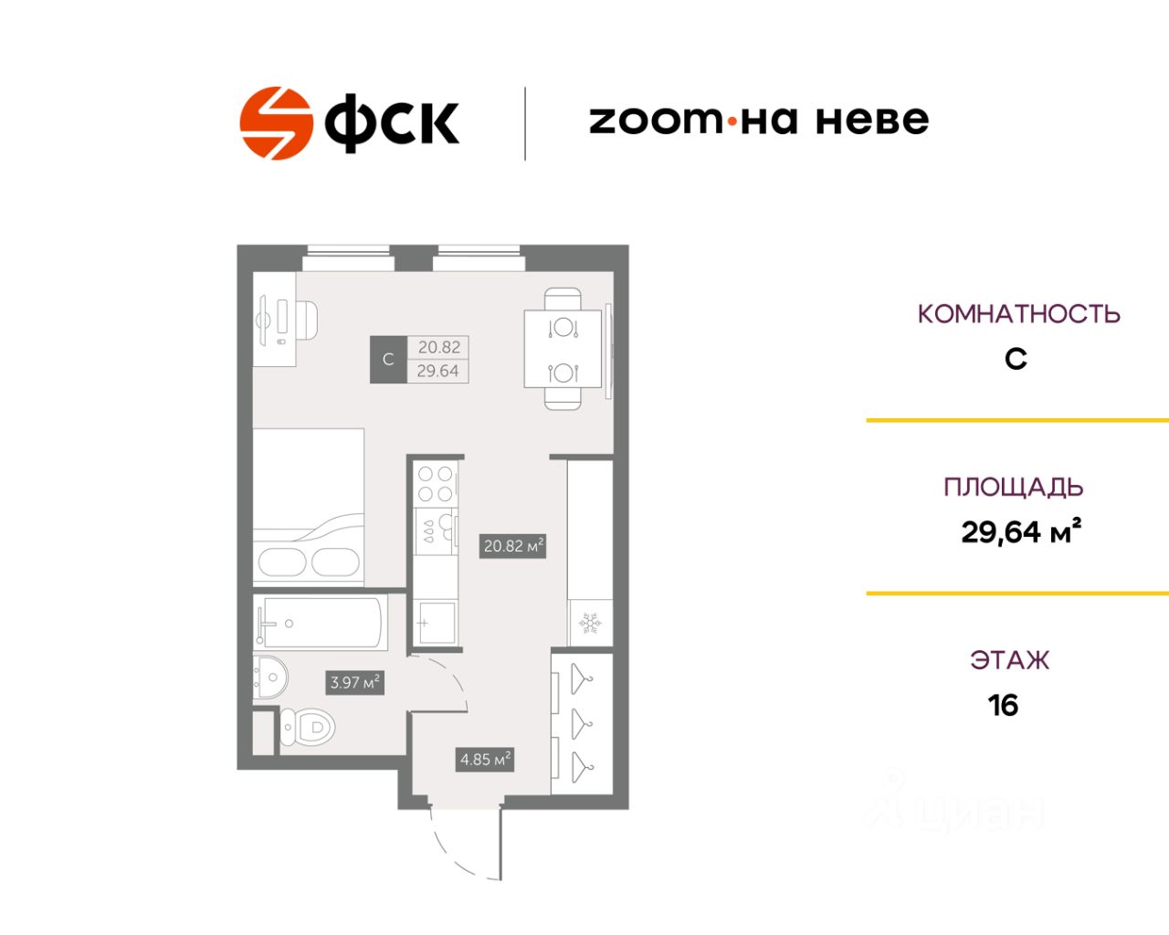 Цена со скидкой до 30% в прямой продаже от застройщика — только в этом месяце. При покупке апартаментов - паркинг за полцены. На все апартаменты действует беспроцентная рассрочка. Купите на распродаже! Покупка недвижимости в Zoom на Неве сейчас со скидкой до 30% позволит через 2 года получить доход до 6 300 000 руб. Роскошные виды на Неву. Апартамент-студия в комплексе класса бизнес-лайт Zoom на Неве на 16-м этаже. Общая площадь 29,64. Без отделки.