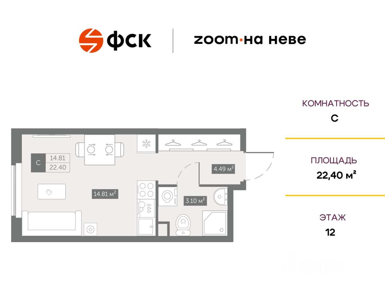 Цена со скидкой до 30% в прямой продаже от застройщика — только в этом месяце. При покупке апартаментов - паркинг за полцены. На все апартаменты действует беспроцентная рассрочка. Купите на распродаже! Покупка недвижимости в Zoom на Неве сейчас со скидкой до 30% позволит через 2 года получить доход до 6 300 000 руб. Роскошные виды на Неву. Апартамент-студия в комплексе класса бизнес-лайт Zoom на Неве на 12-м этаже. Общая площадь 22,4. Без отделки.