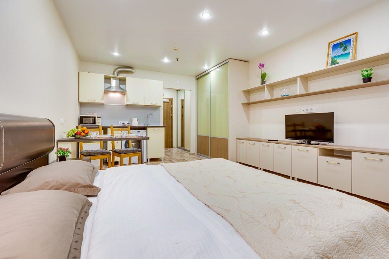 В студии выполнен дизайнерский ремонт: каждый элемент интерьера продуман до мелочей. Здесь есть всё необходимое для комфортного проживания: уютная мебель в комнате и на кухне, современная техника. Просторная кухня площадью 7 кв. м отлично подходит для приготовления ваших любимых блюд. Санузел совмещённый, оборудован ванной, поэтому вы сможете расслабиться после насыщенного дня.