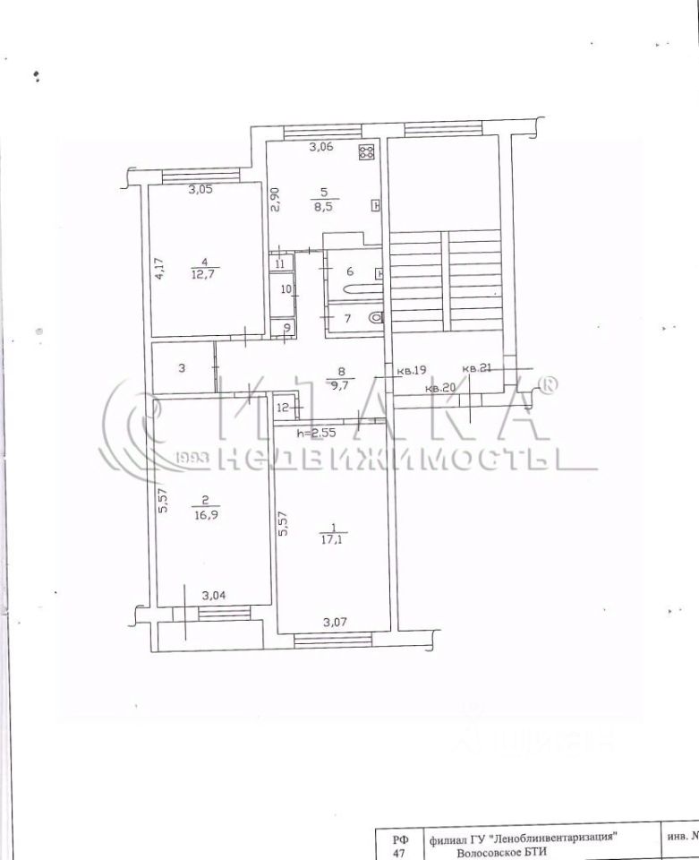 1-91025 ВНЕСЁН АВАНС 60км от СПб продается 3х-комнатная квартира в г. Волосово, на 4/5 этаже панельного дома 121 Гатчинской серии, 1987 года постройки, общая площадь 73,1 кв.м, изолированные комнаты 17.1 + 16,9 +12.7 м, кухня-8,5м. Лоджия застеклена, есть счетчики на водоснабжение. Санузел раздельный.