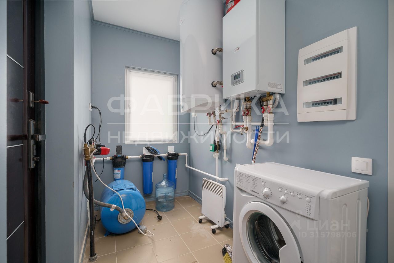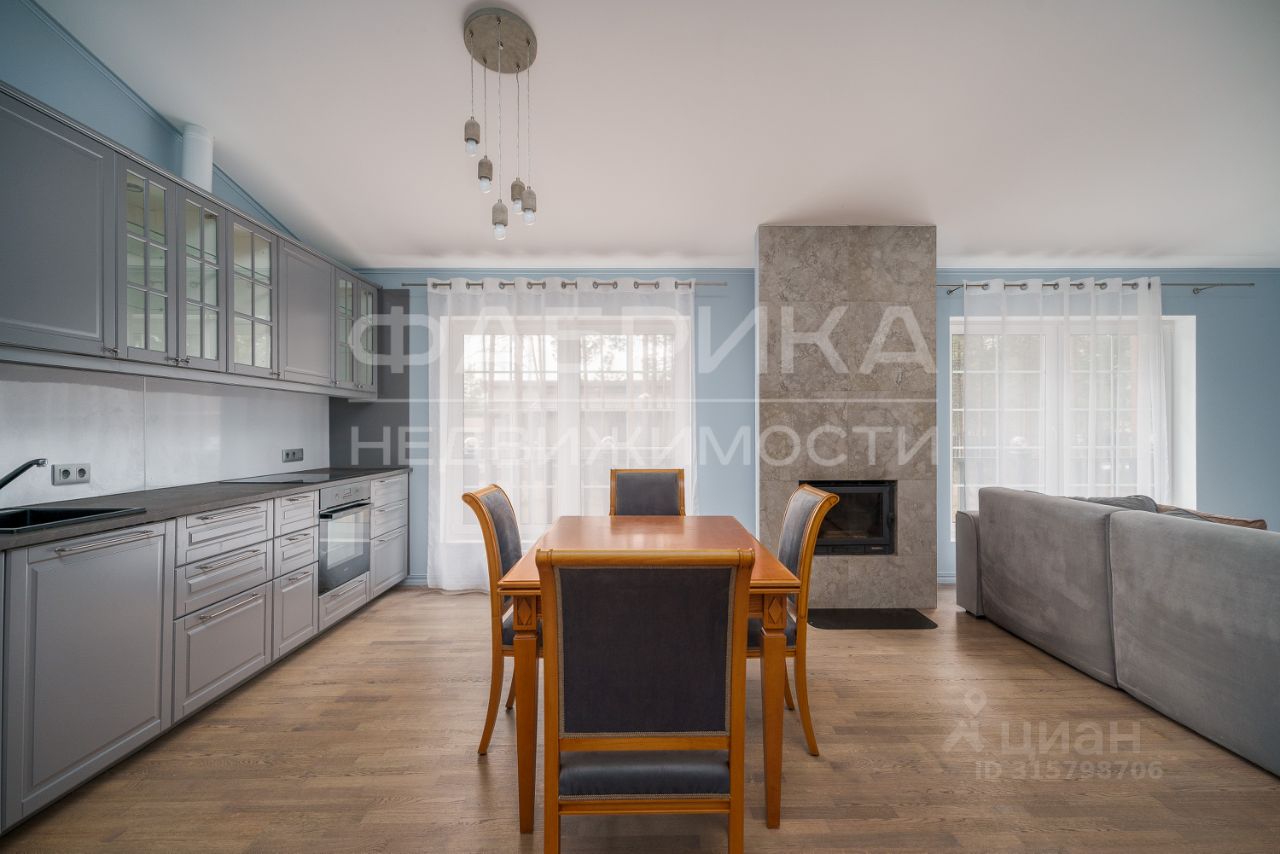 Планировка: •Просторная кухня-гостиная 50 м² с камином. •Три спальни (по 20 м² каждая). •Два санузла: один с ванной, второй с душевой. •Гардеробная, прихожая, котельная со стиральной машиной. •Кухня оборудована всей необходимой техникой (холодильник, духовка, плита, посудомоечная машина). •Установлен кондиционер.