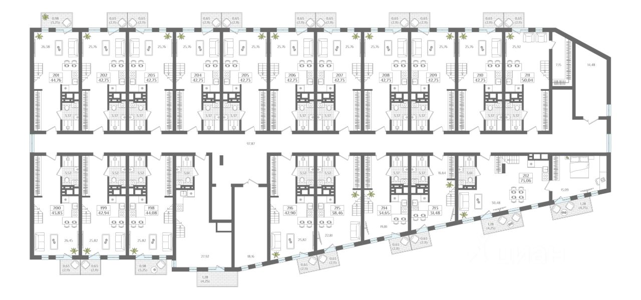 • Апартаменты с качественной предчистовой отделкой •Балконы с панорамным остеклением • Продуманные и функциональные планировки, созданные для разных сценариев комфортной жизни • Удобный, охраняемый подземный паркинг на 38 мест • Мягкая архитектурно-художественная подсветка всего комплекса и прилегающей территории