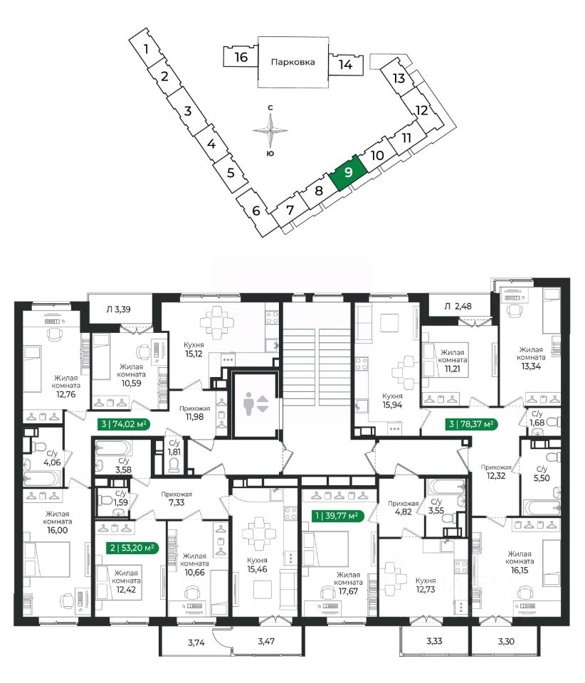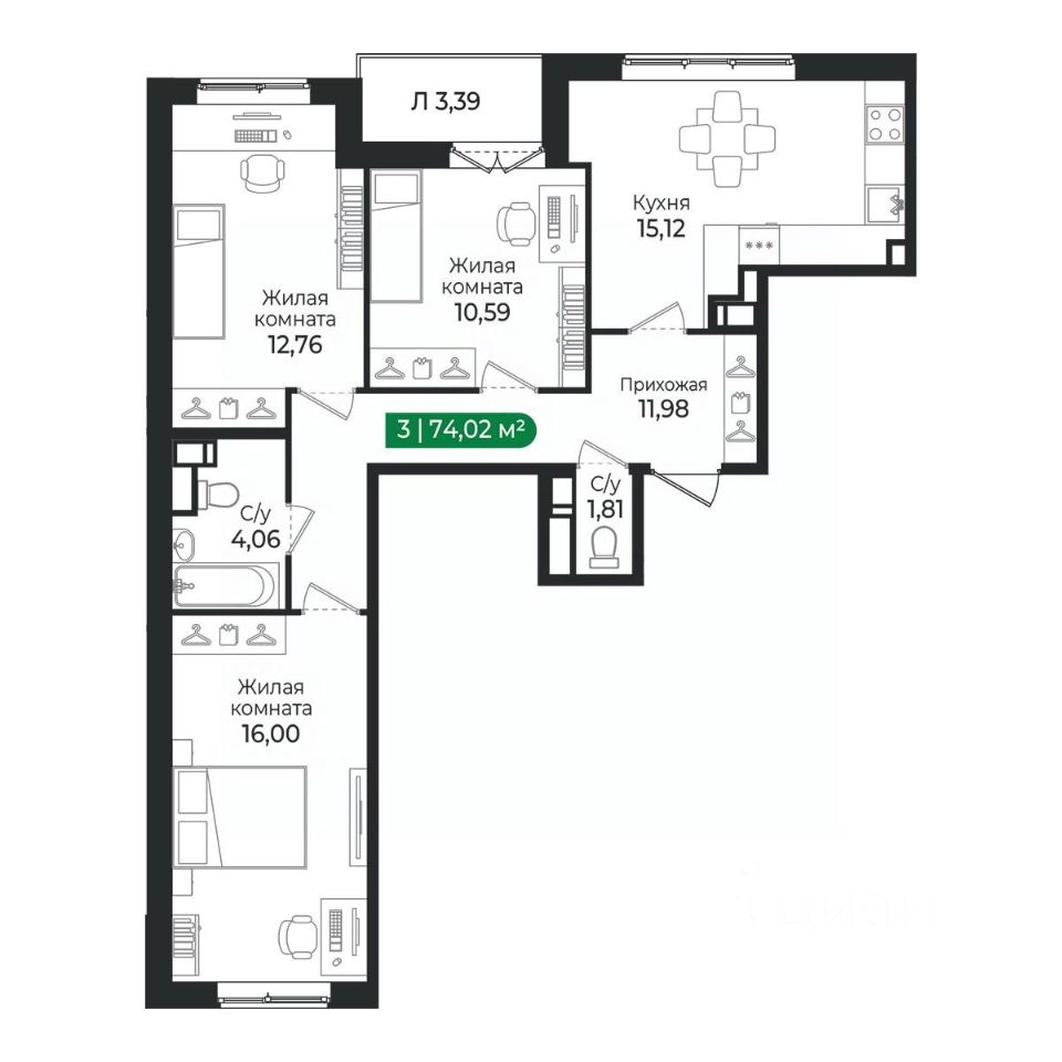 Общая площадь74,02 м2