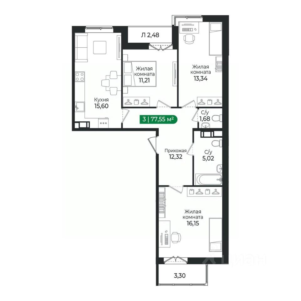 3 - комнатная квартира на 4 этаже общей площадью 77,55 м² в IV очереди в жилом комплексе Сертолово Парк от застройщика ГК Алгоритм. Все квартиры в ЖК Сертолово Парк сдаются с чистовой отделкой в скандинавском стиле. Въезжайте и живите без дополнительных затрат на ремонт. Увеличенные оконные проемы и потолки высотой 2,74 м придают квартирам в ЖК Сертолово Парк ощущение простора, обеспечивая максимальное естественное освещение и свежий воздух. Энергосберегающий дом строится по финским технологиям: наружные стены изготовлены из заводских трехслойных железобетонных панелей толщиной 390 мм, фасады утеплены - толщина утеплителя 150 мм - и закрыты декоративным слоем -толщина 90 мм.