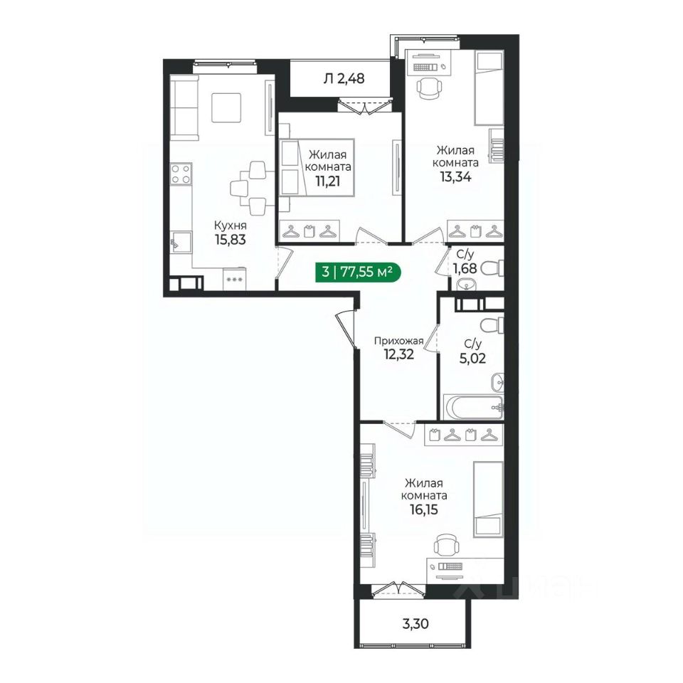 3 - комнатная квартира на 5 этаже общей площадью 77,55 м² в IV очереди в жилом комплексе Сертолово Парк от застройщика ГК Алгоритм. Все квартиры в ЖК Сертолово Парк сдаются с чистовой отделкой в скандинавском стиле. Въезжайте и живите без дополнительных затрат на ремонт. Увеличенные оконные проемы и потолки высотой 2,74 м придают квартирам в ЖК Сертолово Парк ощущение простора, обеспечивая максимальное естественное освещение и свежий воздух. Энергосберегающий дом строится по финским технологиям: наружные стены изготовлены из заводских трехслойных железобетонных панелей толщиной 390 мм, фасады утеплены - толщина утеплителя 150 мм - и закрыты декоративным слоем -толщина 90 мм.