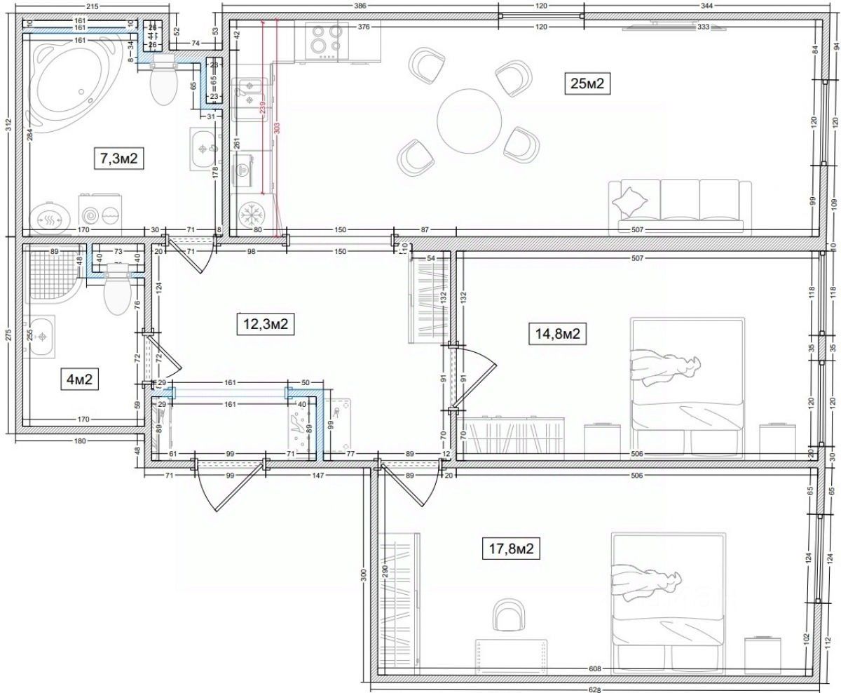 Квартира без отделки - для воплощения всех Ваших дизайнерских идей! Просторная прихожая, вместительная кухня-гостиная 25 кв м. Две изолированные комнаты 17.8 и 14.9 кв м. Два санузла, один из которых можно оборудовать под гардеробную. Клубный жилой комплекс на 57 квартир. Установлено видеонаблюдение, круглосуточно работает консьерж. Закрытый двор. Есть подземный паркинг. Петроградский район - это развитая инфраструктура, множество учебных заведений, различные варианты прогулочных зон от набережной до ботанического сада. Удобное транспортное сообщение.