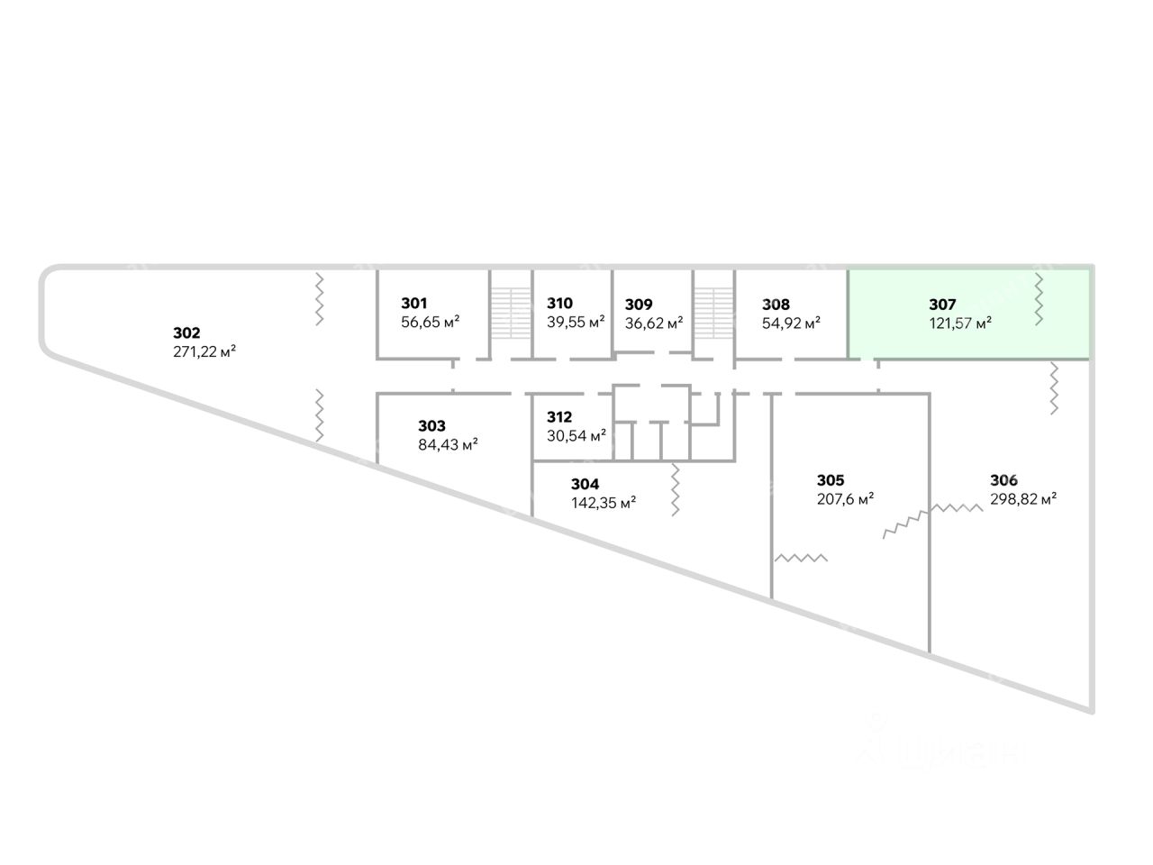 - Размер типового этажа: 1562,