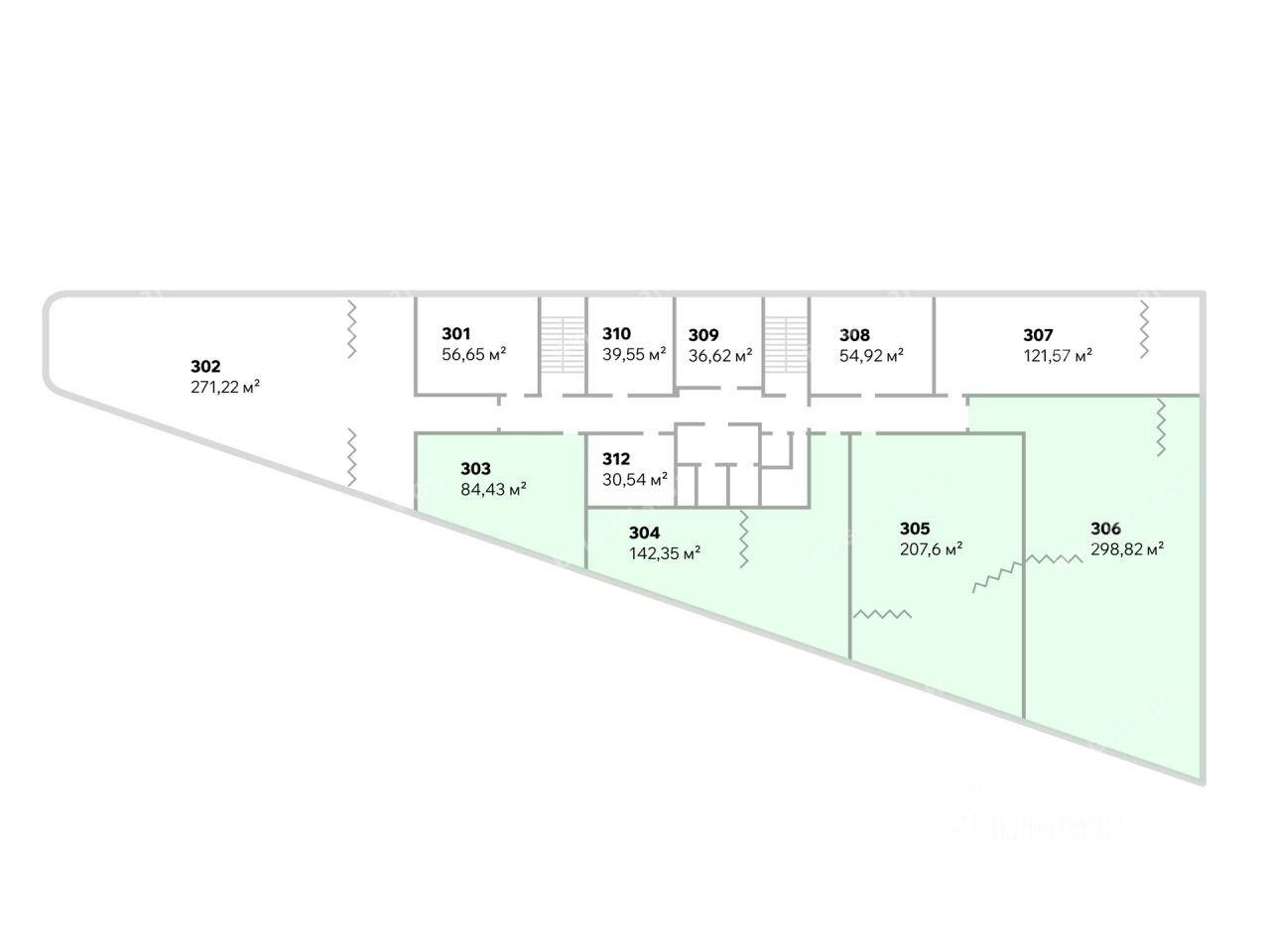 - Размер типового этажа: 1562,