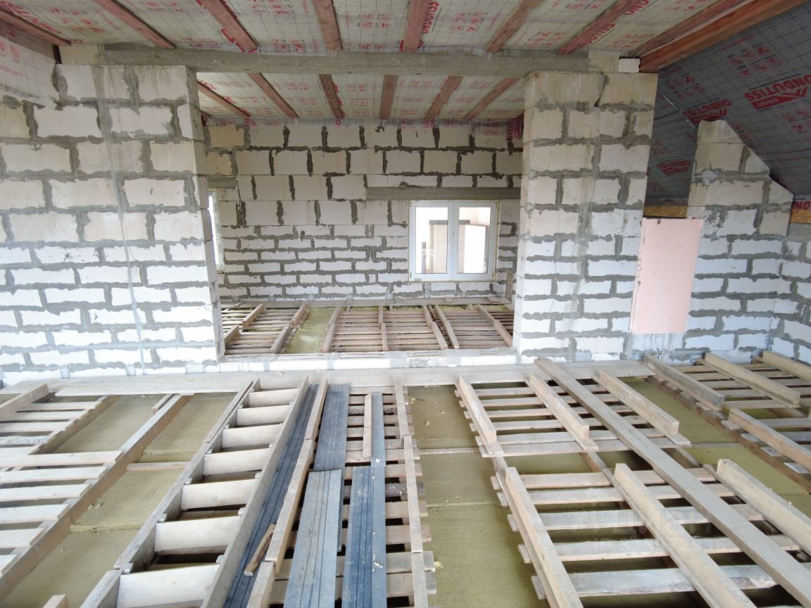 Площадь дома с учетом гаража - 220 кв. м. Жилая площадь - 161 кв. м. Фундамент- ленточный в гараже и монолитная плита в доме Стены пеноблоки Перекрытия железобетонные 220мм Кровля- металлочерепица Утепление мансарды - из полужесткой базальтовой ваты Окна металлопластиковые, двухкамерные