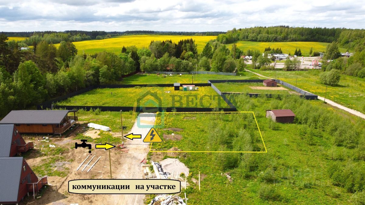 + электричество (возможно подключение 15кВт, столб есть). + вода (скважина). + газификация района уже ведется (в соседних Сосновых Горках газ провели).