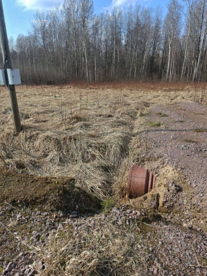 Для удобного заезда автомобиля к участкам проложена дренажная труба с отсыпкой. Проведено электричество 15кв, установлены счетчики. Для водоснабжения нужно либо выкопать колодец на три кольца, либо бурить скважину.