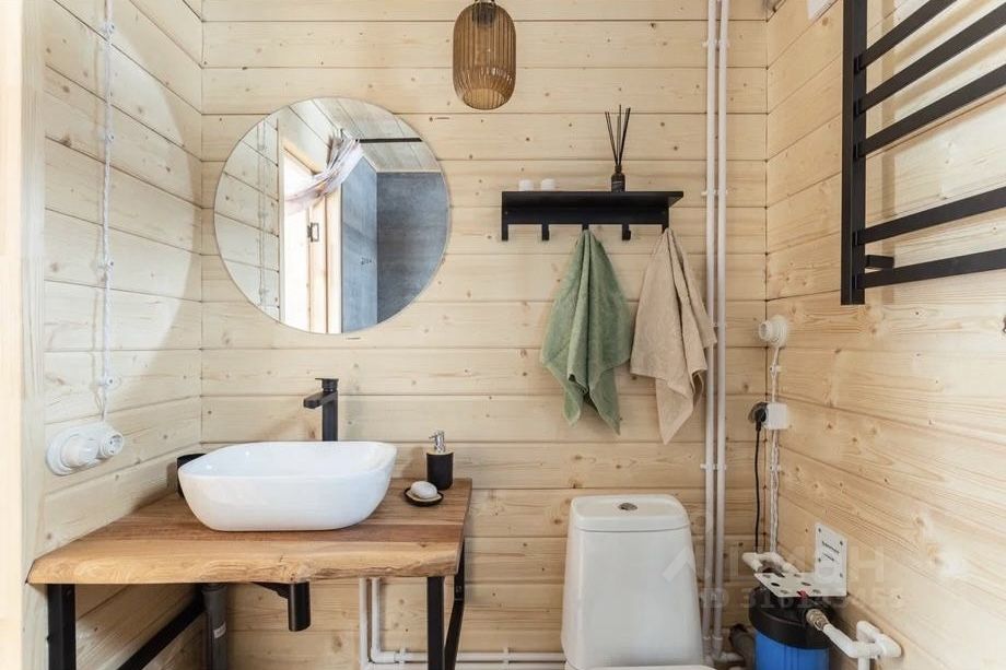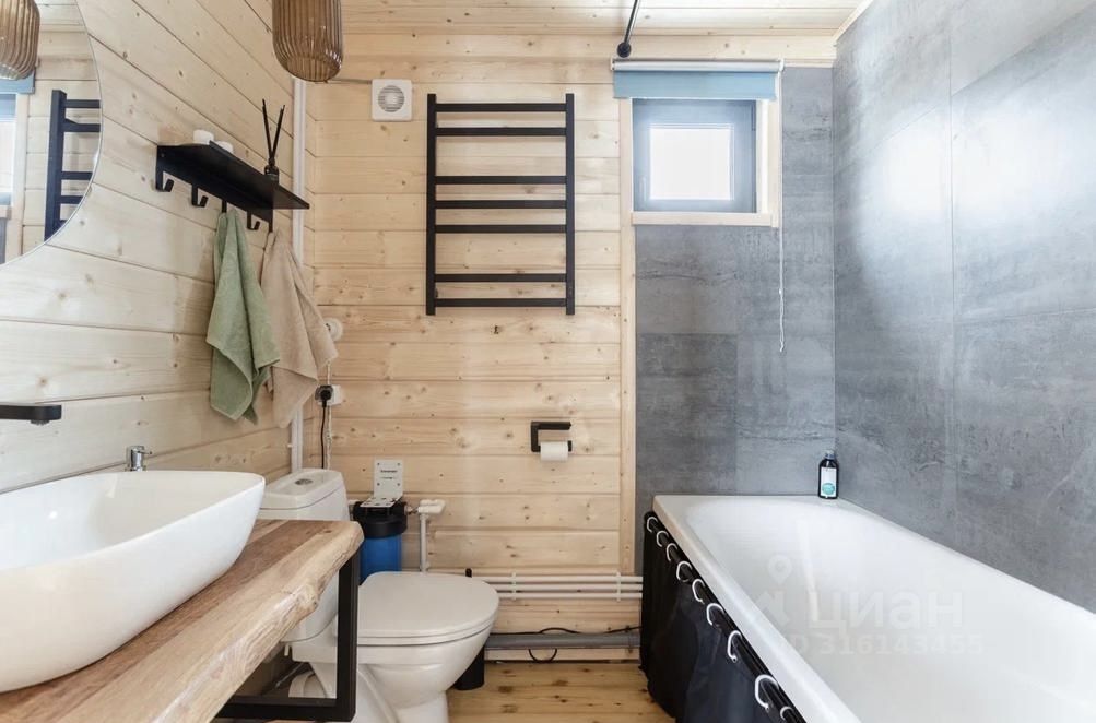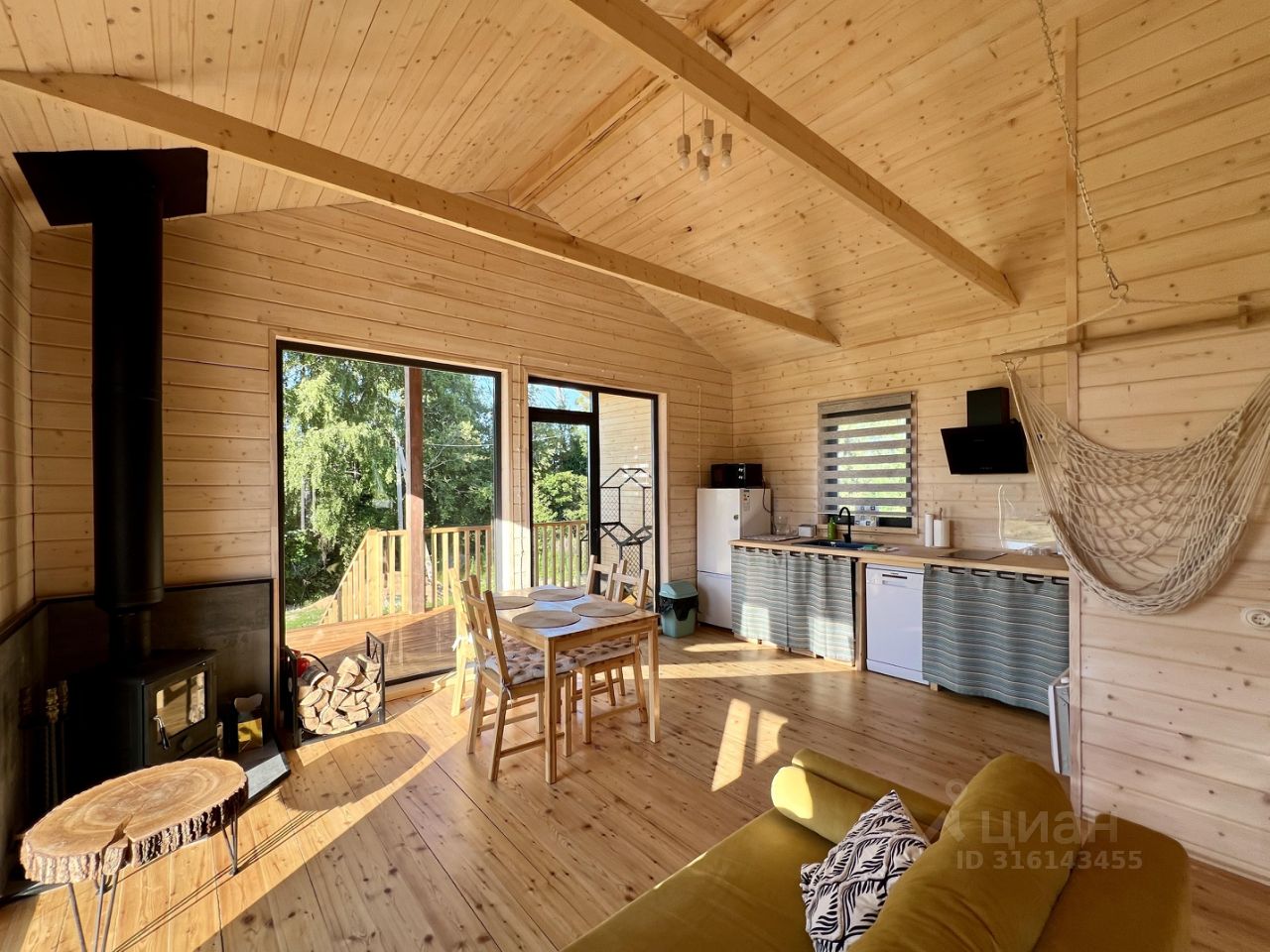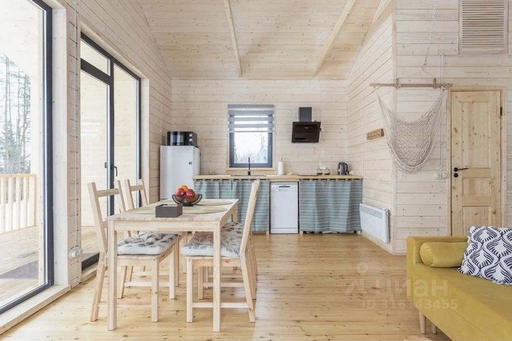 Планировка включает кухню-гостиную с камином, две спальни, ванную комната, просторную терраса. Панорамные окна дома выходят в сторону леса. Дом укомплектован всем необходимым для комфортного проживания. Предусмотрен подогрев полов, wi-fi, баня на дровах, купель.