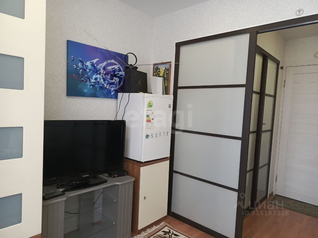 На кухне все необходимое для приготовления пищи. В комнате электрический чайник, СВЧ печь, холодильник, телевизор, диван, шкаф. Вода в комнату не проведена!