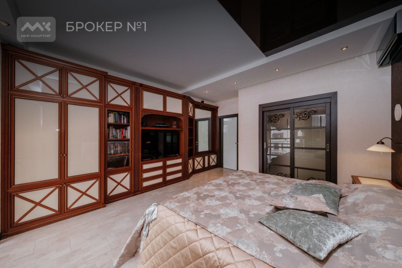 Планировка смежно-изолированная: -Большая кухня-гостиная с панорамными окнами, в которой есть уютная зона для отдыха с диваном, большим телевизором и камином, обеденная зона с большим столом, и полностью оборудованной кухней со всей необходимой бытовой техникой. - В ванной комнате также есть большое окно с прекрасным видом на город, 2 санузла. - Кабинет/Детская с полноценно оборудованным рабочим местом, есть книжный шкаф, мебельный гарнитур, спальное место, небольшая гардеробная. - Спальная комната с кроватью, гардеробной, есть мебельный гарнитур с зонами для хранения, выделенное рабочее место, большой телевизор, кондиционер.