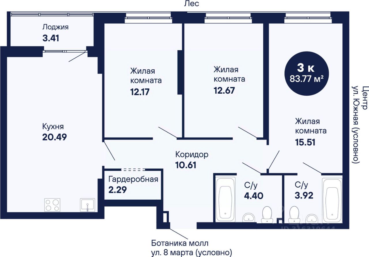 Общая площадь83,77 м2