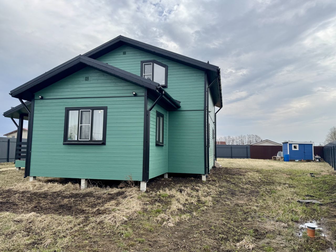 Дом удачно расположен на участке: окна с одной стороны выходят в сторону реки, с другой - на участок. Соседние дома на приличном расстоянии находятся.