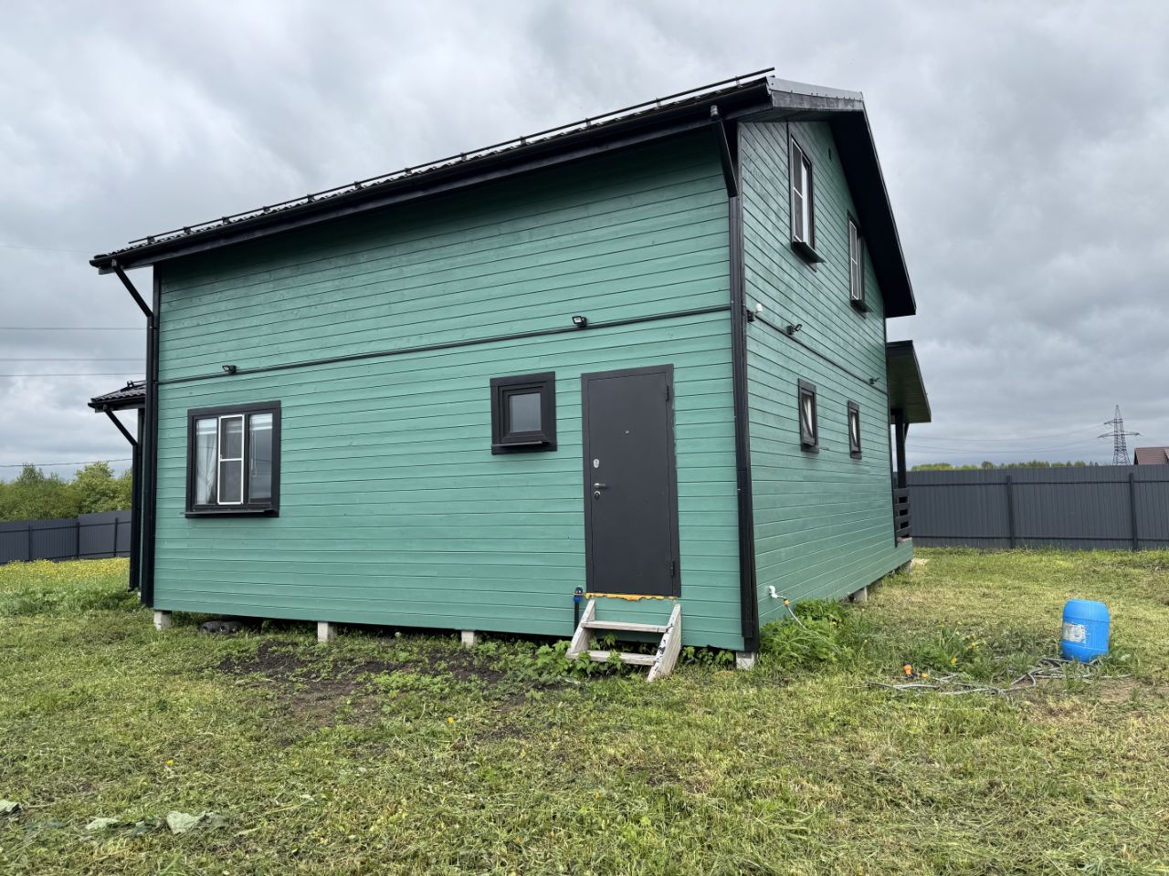 Дом каркасный, очень теплый, строился для себя. Утепление : пол - 200, стены - 150, двухкамерные стеклопакеты, крыша металлочерепица. Фундамент: железобетонные сваи - 5 м в земле. Канализация - септик, вода из скважины, электричество - 15 кВт.