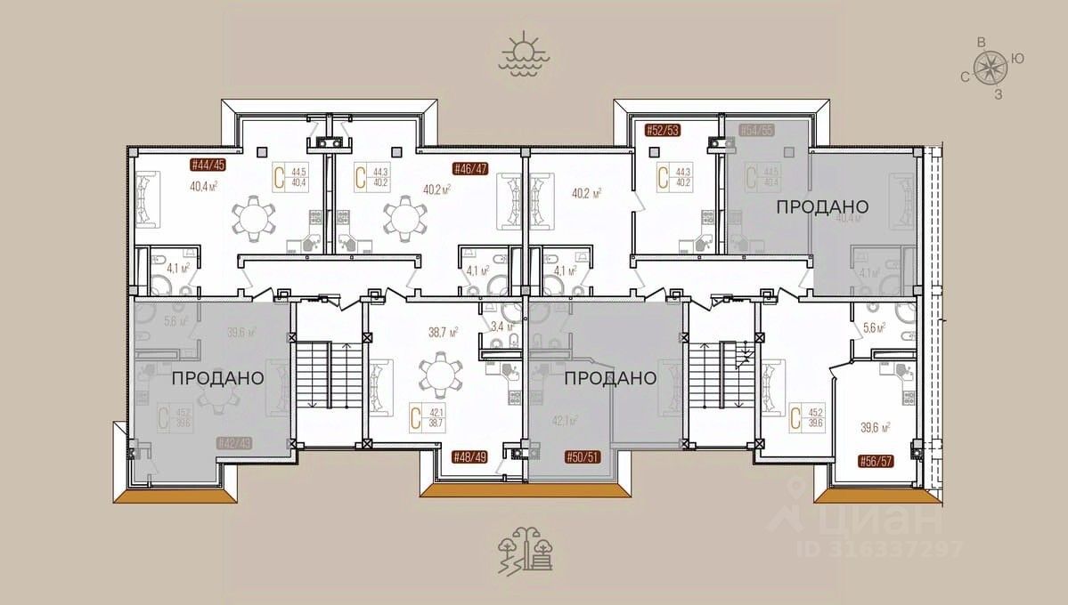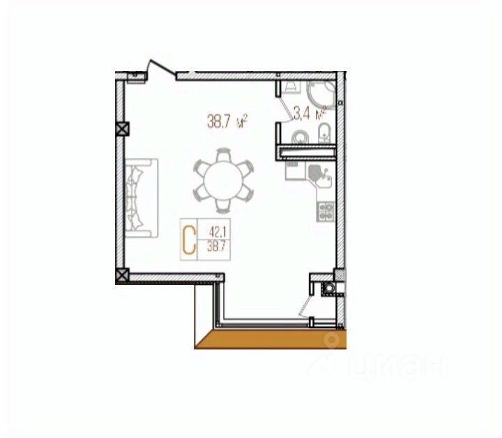 Общая площадь42,1 м2