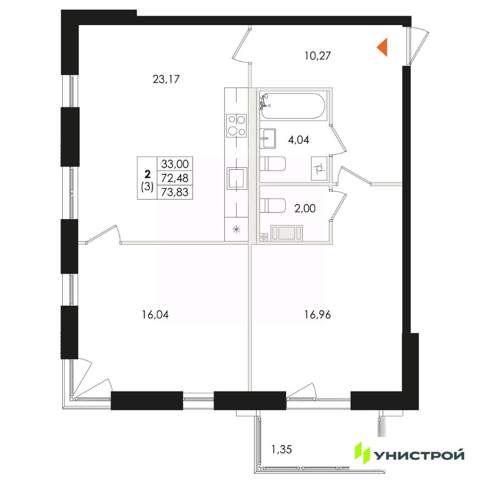 Общая площадь73,83 м2
