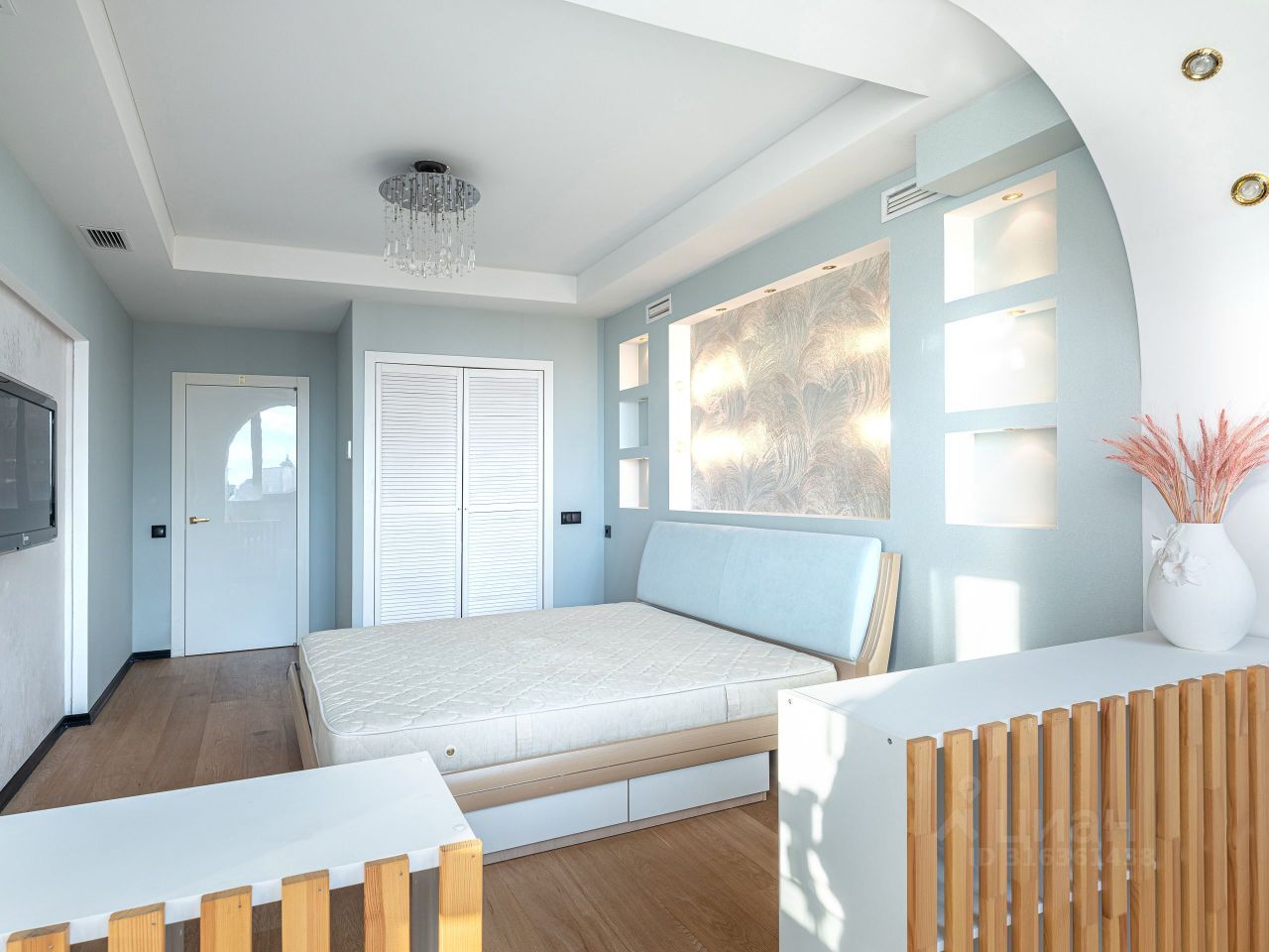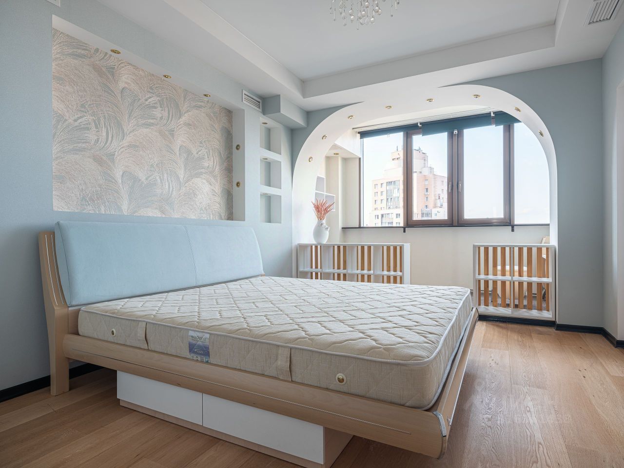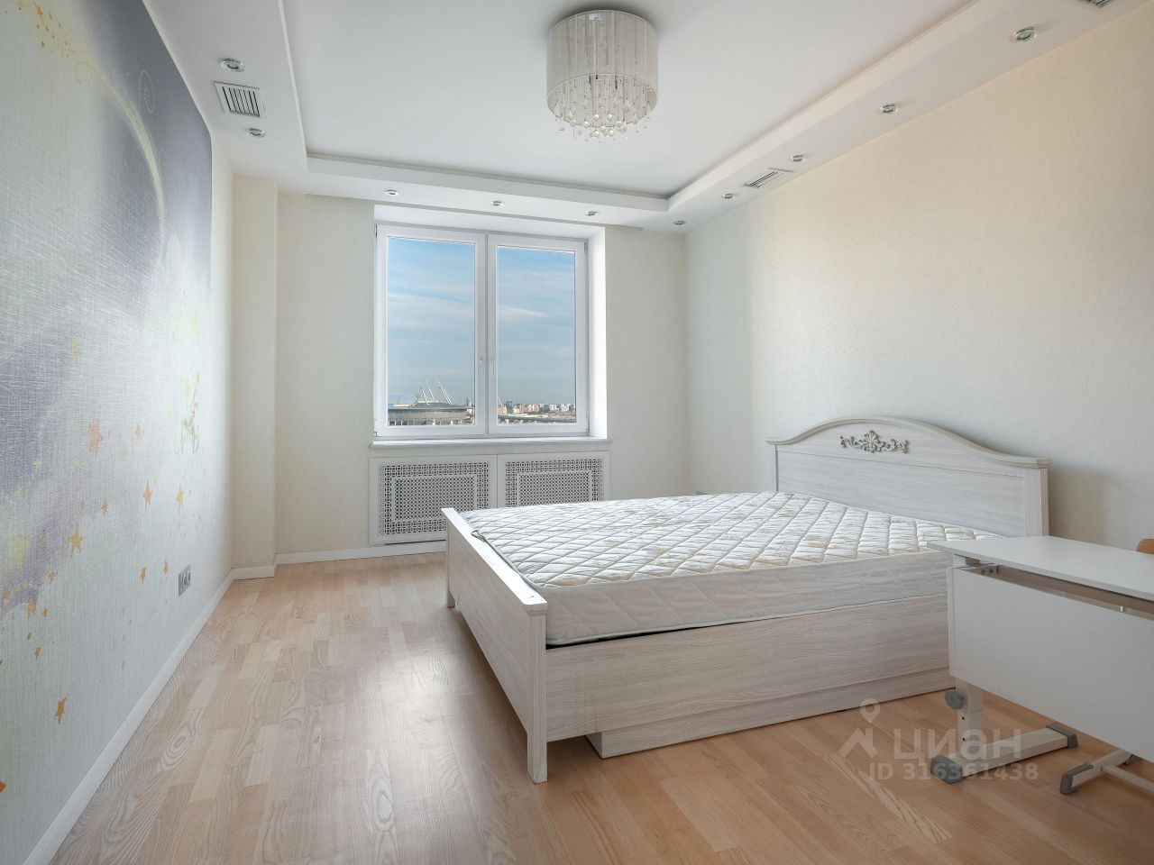 Две уютные изолированные комнаты: большая родительская спальня с собственной просторной гардеробной, оснащенной современной системой хранения, и детская с видом на Крестовский остров и акваторию Финского залива.