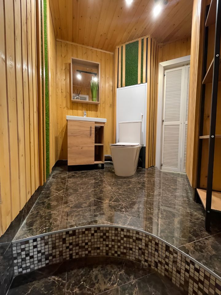 Санузел имеет отдельное помещение под сауну, душевую комнату и джакузи. Трехступенчатая ультрафиолетовая система подготовки и очистки воды. Система приточной вентиляции.