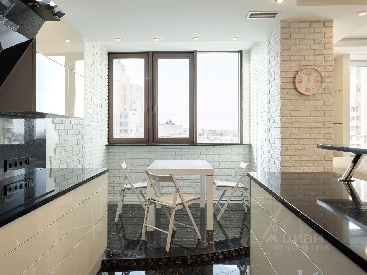 Полы в жилой зоне качественная паркетная доска. Полы в коридоре, кухонной зоне и ванной комнате оборудованы системой теплый пол, - керамогранит Peronda Museum (Испания). Также из керамогранита выполнены столешницы кухонного гарнитура и подоконники.