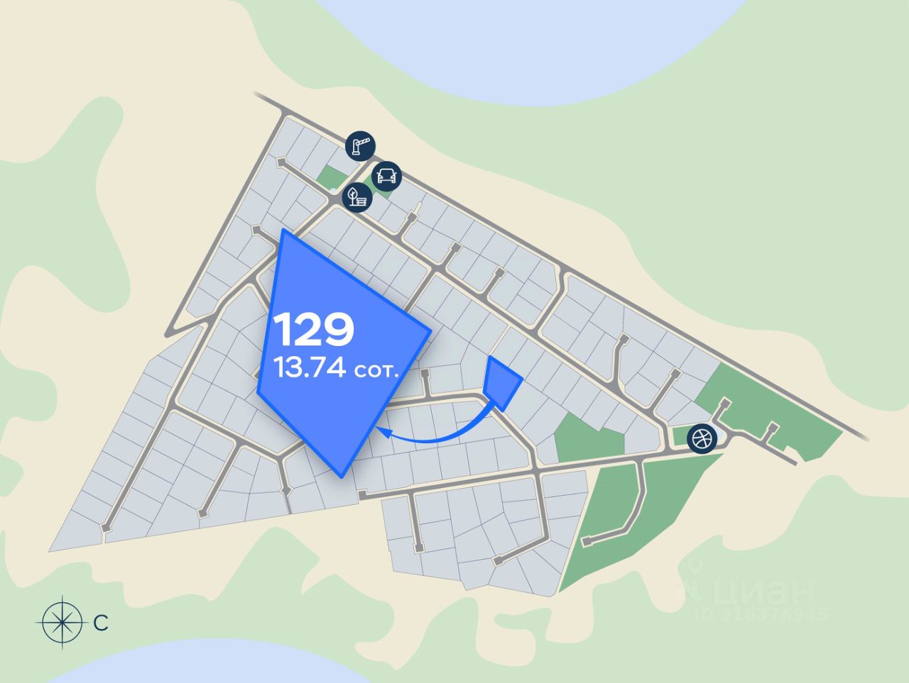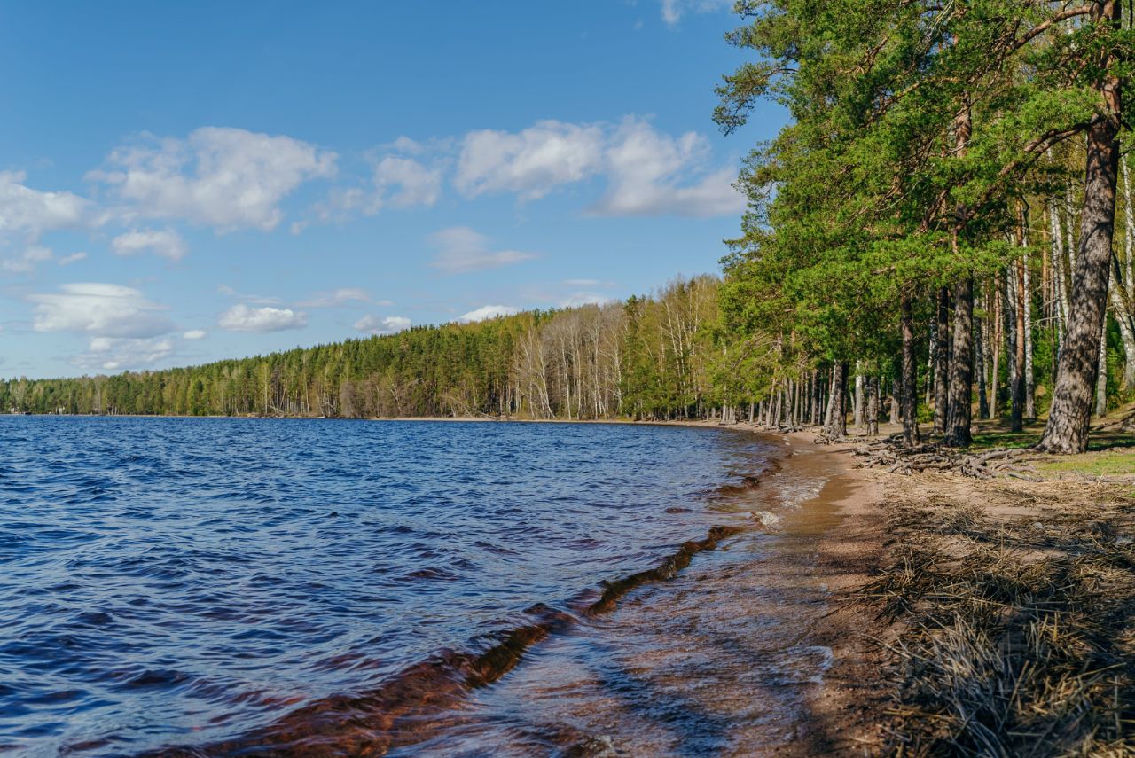 Участок в благоустроенном посёлке у двух озер и хвойного леса