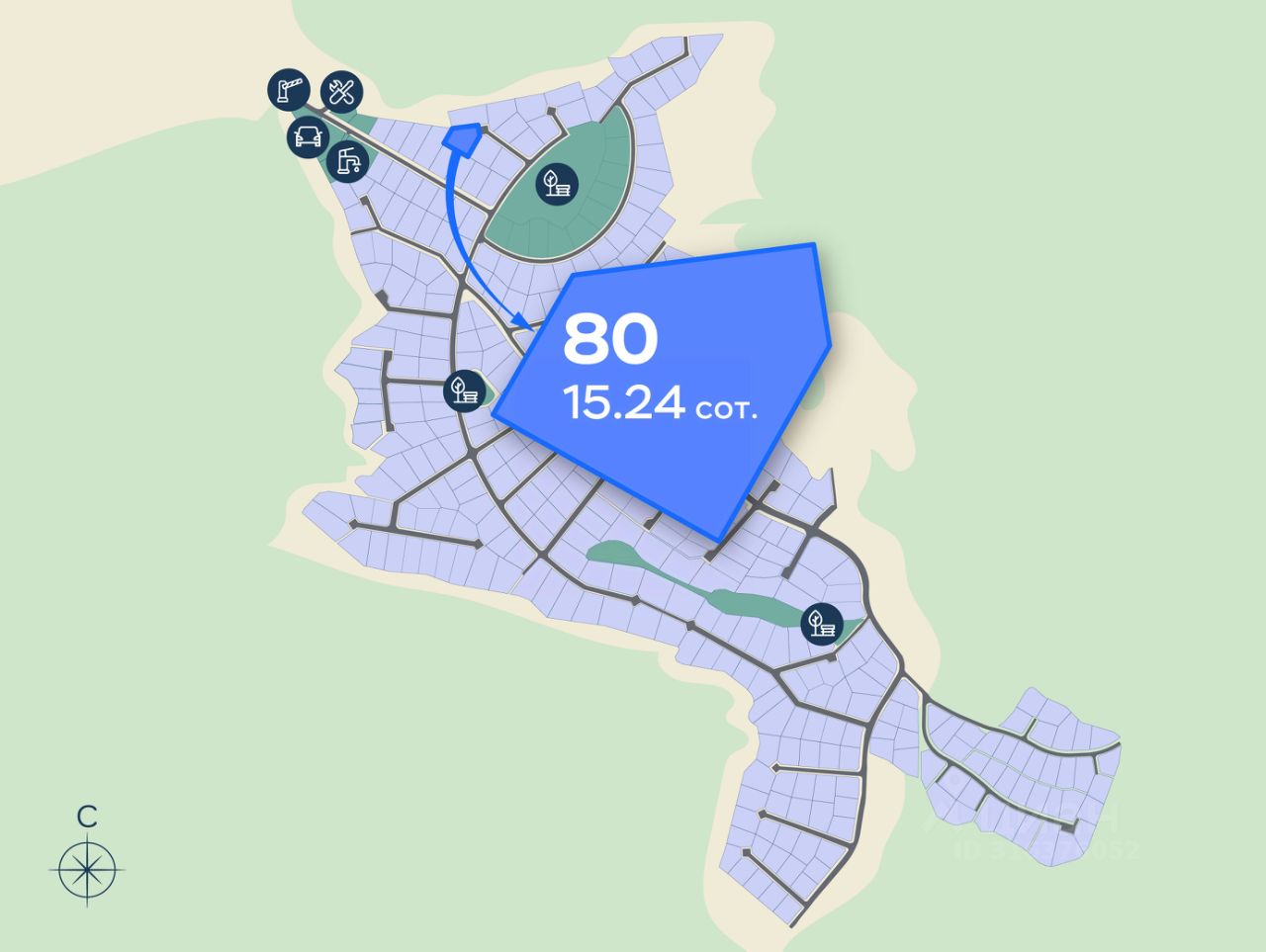 КОММУНИКАЦИИ И ИНФРАСТРУКТУРА ПОСЁЛКА: Электричество 15 кВт (по Постановлению Правительства 861) Водопровод КПП, охрана Гостевая парковка Асфальтовые дороги с тротуарами Светодиодное уличное освещение Единое ограждение, въезд на участок Территория отдыха: свой парк с водоёмом и две зоны отдыха Обслуживанием территории занимается профессиональная сервисная компания ''Гринлайн''.