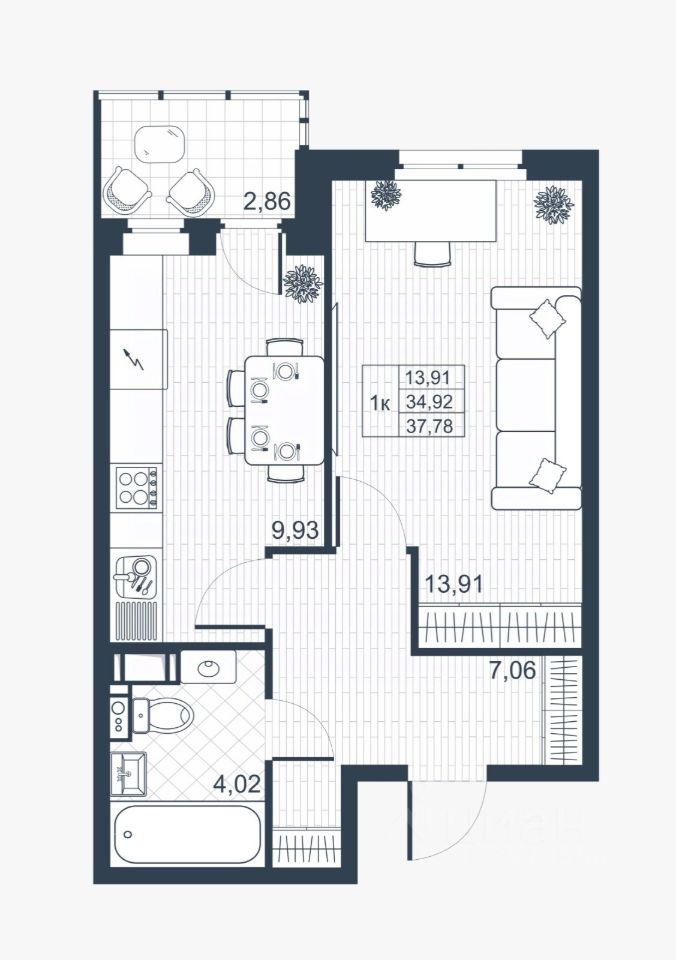 Общая площадь34,7 м2