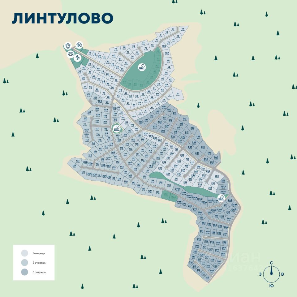 Участок в посёлке с собственным парком в Выборгском районе _______________________ РАСПОЛОЖЕНИЕ: Коттеджный посёлок ''Линтулово'' в 35 км от Санкт-Петербурга. В 15 минутах пути на автомобиле находится Зеленогорск, в котором есть нужная для отдыха и жизни инфраструктура: школы и детские сады, магазины и аптеки, рестораны и спа-центры
