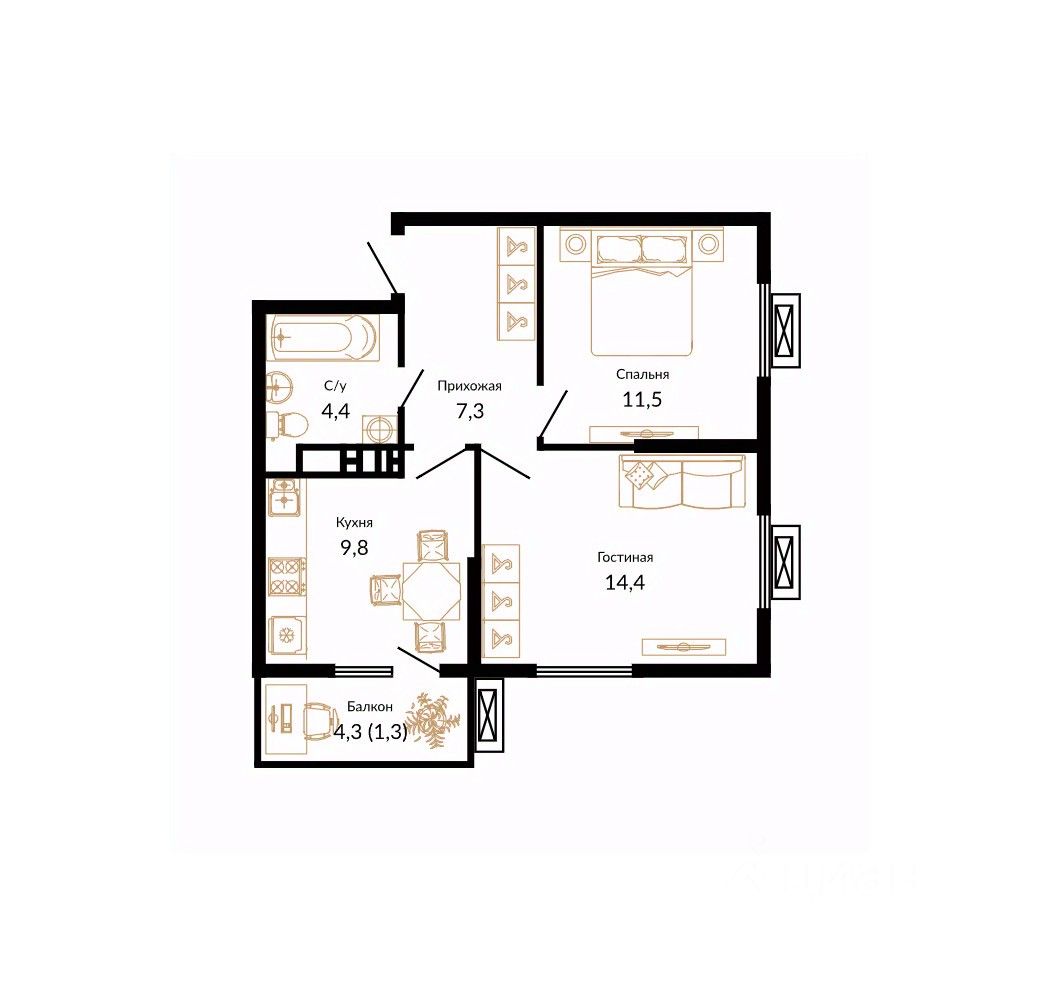 Кухня9,8 м2
