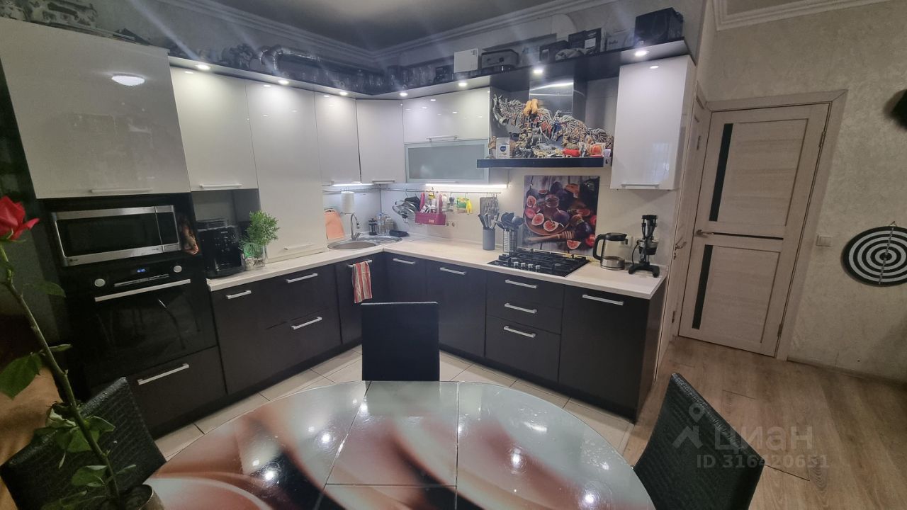 Остается встроенная кухня с бытовой техникой. Два встроенных шкафа.