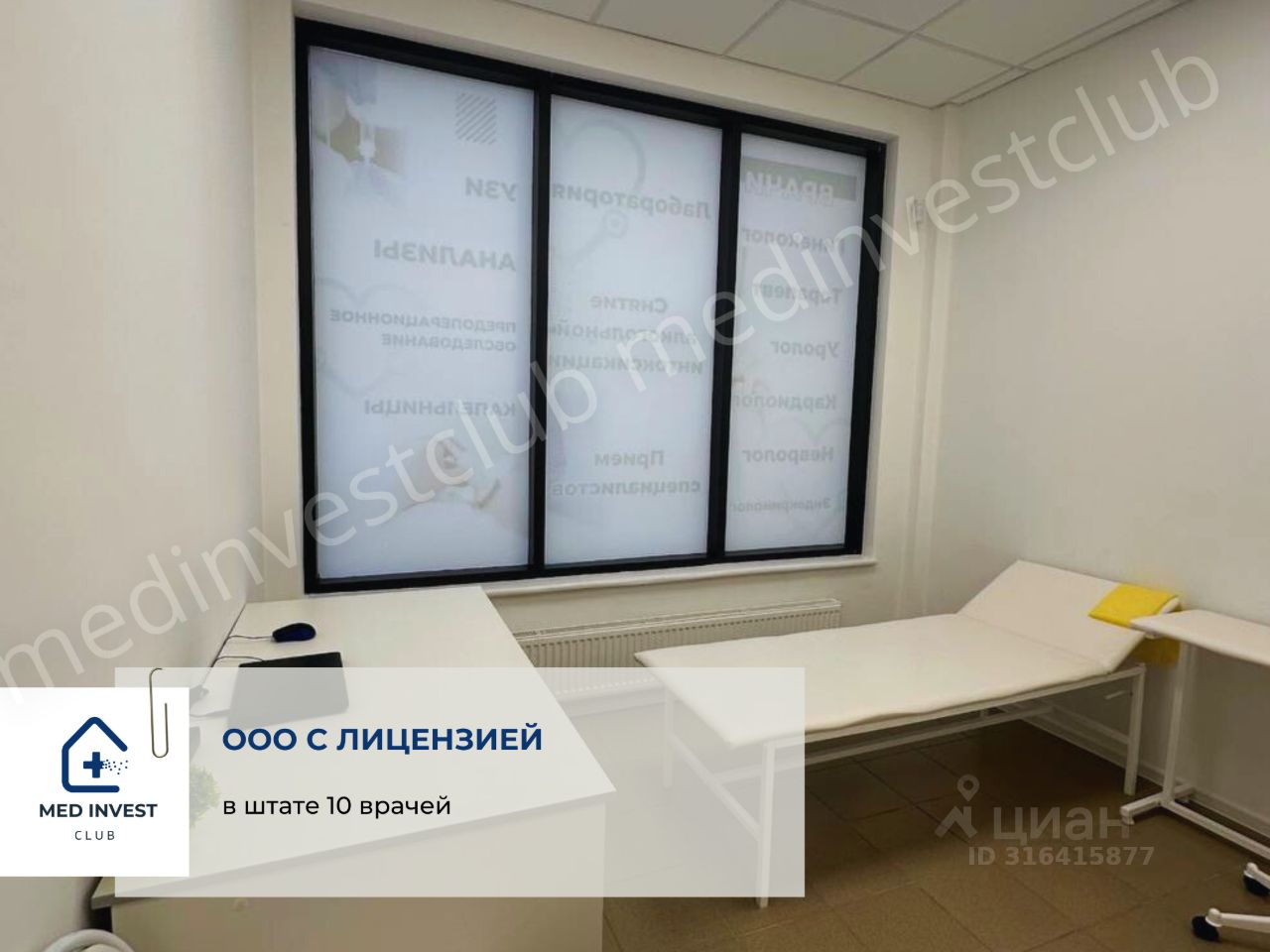 О БИЗНЕСЕ - юго-запад Петербурга, - новый жилой квартал, - действующий штат из 10 врачей, - возможна помощь на начальном этапе, - действующая медицинская лицензия, - УЗИ-аппарат на 4 датчика.